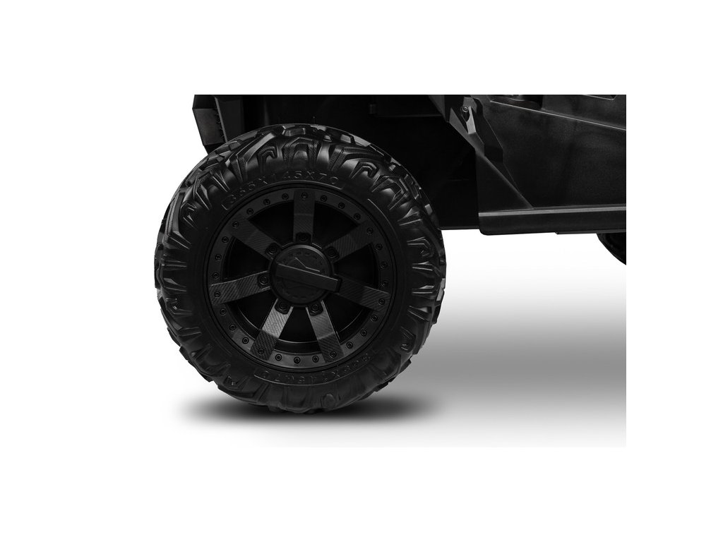 Timus je veľké vozidlo na batériový pohon v terénnej verzii. Má všetky kľúčové prvky, vďaka ktorým sa vaše dieťa bude cítiť ako pri jazde v skutočnom terénnom vozidle : 35-centimetrové kolesá s rozchodom kolies, 4 výkonné motory , vysokú svetlú výšku až 20 cm a priečku s tromi LED svetlometmi. Pohodlie jazdy zabezpečí veľké a pohodlné sedadlo z eko-kože, vybavené bezpečnostným pásom. Vďaka veľkej veľkosti Timusa sa o niečo staršie deti naučia zmysel pre priestor, ako aj zodpovednosť a samostatnosť. Na druhej strane, rodičia menších detí môžu vozidlo ovládať na diaľku alebo použiť funkciu hojdania, ktorá vozidlo mierne posúva dopredu a dozadu. Čas strávený v aute vám navyše spríjemní multimediálny panel s USB a Bluetooth.