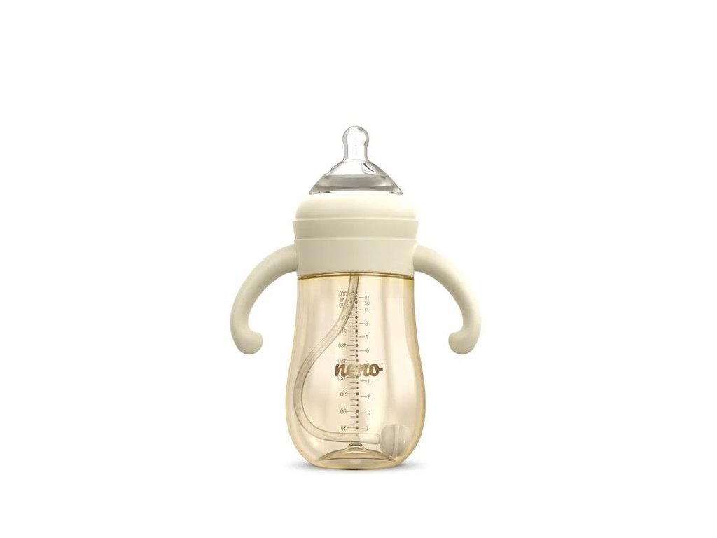 Neno Mio je inteligentná dojčenská fľaša 3 v 1 s cumlíkom proti kolike, ktorý ovplyvňuje prirodzenú polohu jazyka. Je ideálna na každodenné kŕmenie a pri rozširovaní jedálnička vášho bábätka. Je vyrobená z PPSU materiálu, ktorý je odolný voči mechanickému poškodeniu. Má špeciálny prietokový systém s otvorom v tvare krížika, ktorý možno použiť na podávanie mlieka, vody, čaju, šťavy a iného tekutého jedla.