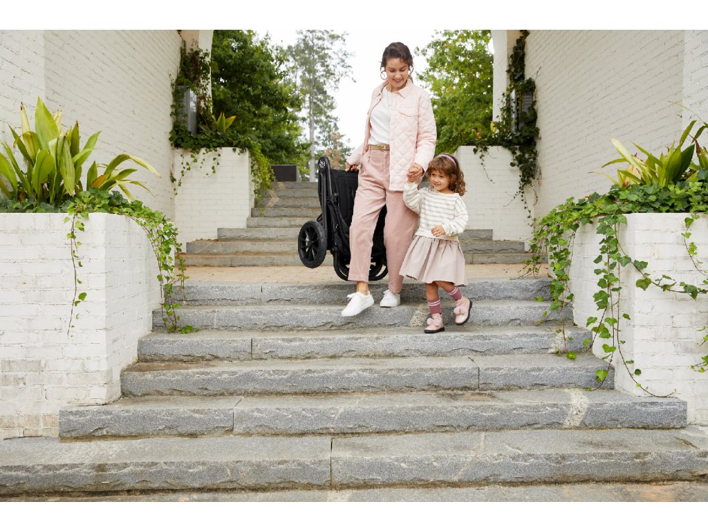 Každá mamička ocení praktické ľahké skladanie jednou rukou a ručnú parkovaciu brzdu, vďaka ktorej si neničia topánky. Polohovacie rukoväť je vhodná ako pre nižšie, tak aj pre veľa vysoké rodičov. Nastaviteľná opierka nožičiek do 2 polôh, multifunkčné polohovanie opierky chrbta takmer do roviny a ventilačné okienka na strieške pomáhajú zaistiť vášmu dieťaťu maximálne pohodlie. Vďaka okýnkům "peek-a-boo" má mamička svoju ratolesť neustále pod dohľadom. Vytvorte si svoj cestovný systém s našimi adaptérmi na autosedačky alebo si vybavte kočík podľa svojich potrieb pomocou rôznych doplnkov!