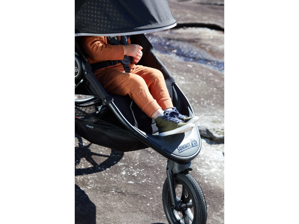 Nový Baby Jogger® Summit ™ X3 je špičkový kočík pre jogging do každého terénu, ktorý je vybavený nafukovacími gumovými kolesami, odpružením všetkých kolies a novými detailmi s reflexnými prvkami, takže môžete v pokoji vstať a vyraziť von. Skladanie jednou rukou, diaľkovo ovládané uzamykanie predného kolesa a ručná brzda vám poskytnú maximálne pohodlie. Viacpolohový sklon sedáka a strieška s UV 50+ pomáhajú zaistiť vášmu dieťaťu maximálne pohodlie, zatiaľ čo okienka Peek-a-Boo vám umožňujú ho sledovať. Prispôsobte si jazdu pomocou rôznych doplnkov!
