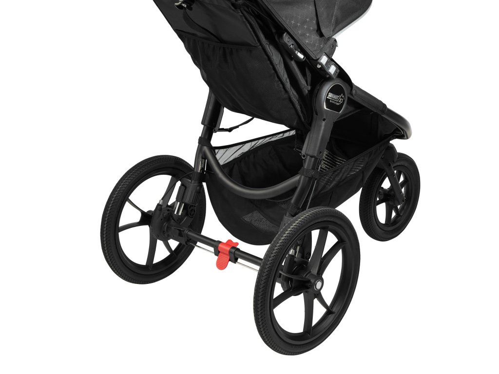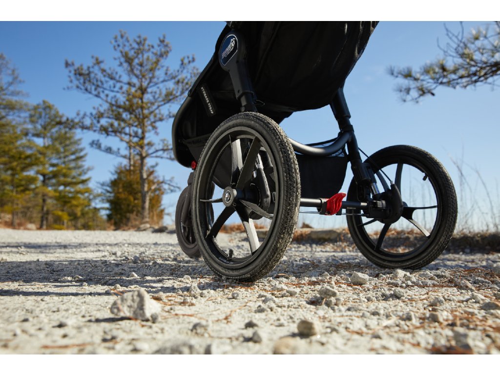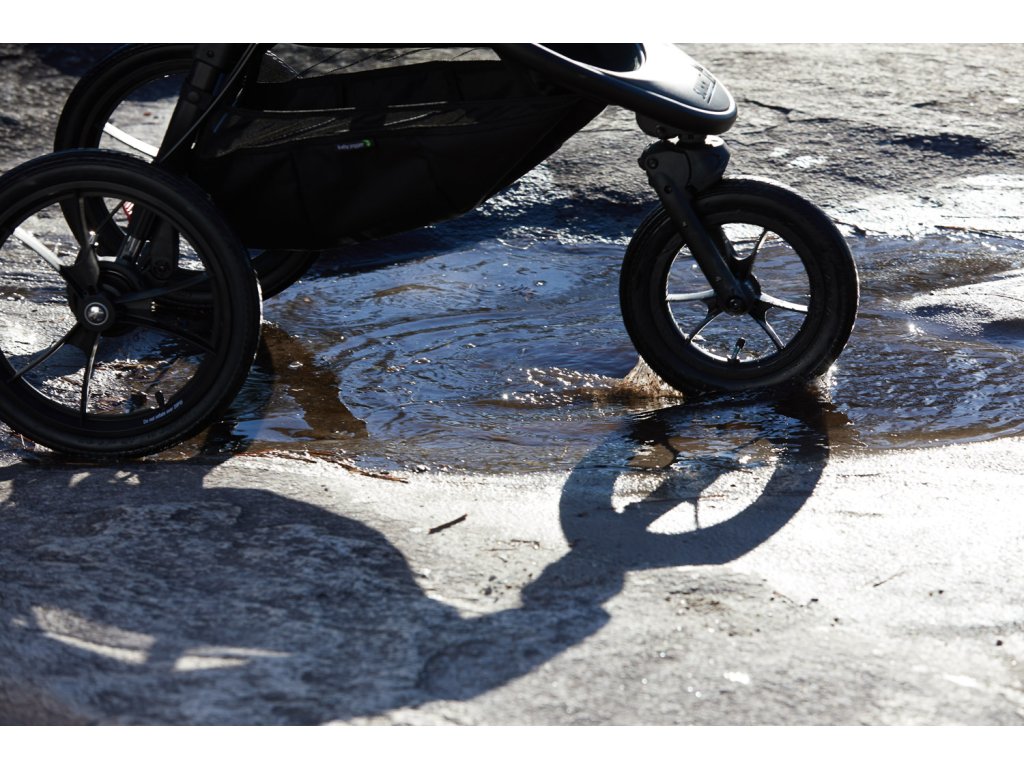 Odľahčenie všetkých kolies // Summit ™ X3 má 12 "a 16" vzduchom naplnená gumová kolesá s odpružením 3x3, vďaka ktorým je jazda po akomkoľvek teréne tou najhladšie jazdou, či už v režime joggingu alebo pri bežnej jazde s kočíkom.