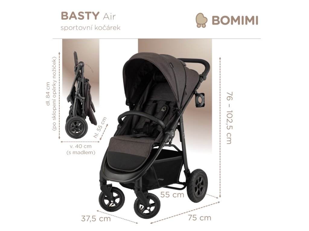 Bomimi BASTY Air športový kočík, (6m-22 kg), ANTHRACITE melange