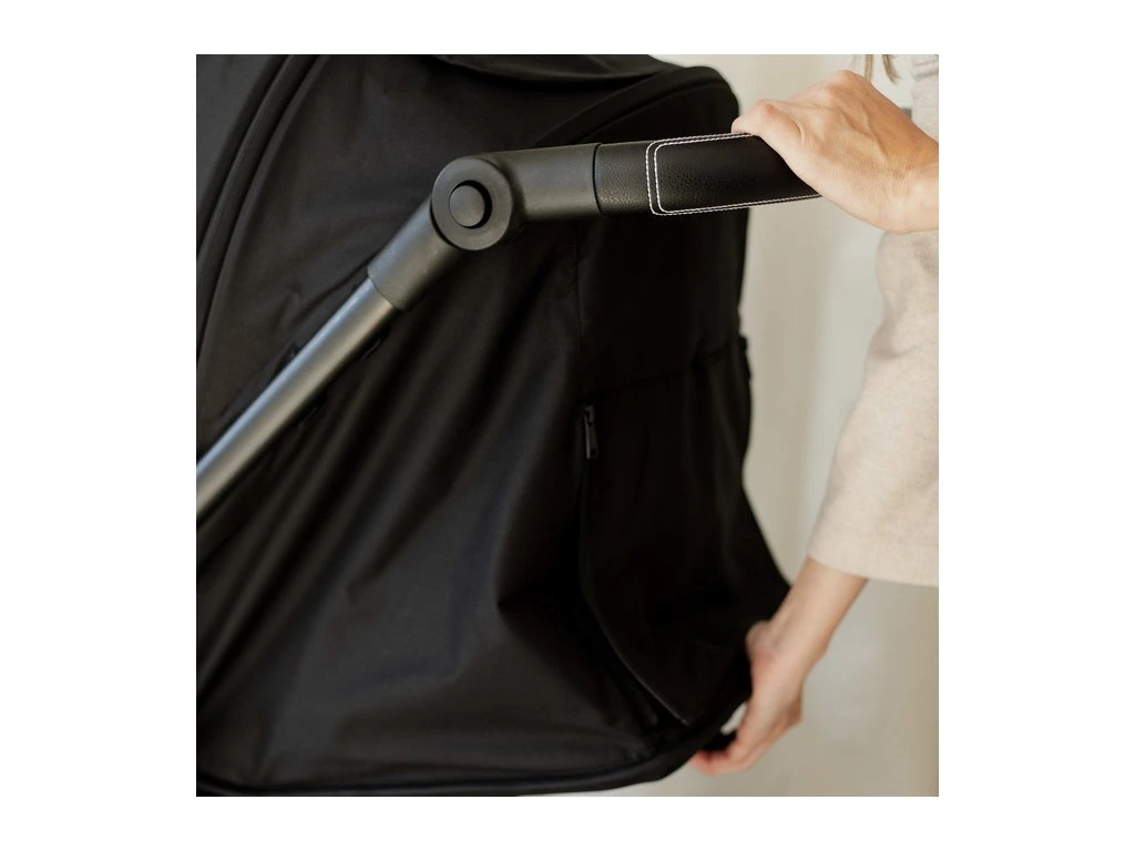 PRISPÔSOBENÉ RODIČOMNastavenie sklonu riadidiel umožňuje jednoduché prispôsobenie výšky postave rodiča, čo zaisťuje pohodlie pri tlačení kočíka. Vysokokvalitná ekokoža dodáva kočíku moderný vzhľad a zvyšuje komfort používania. |