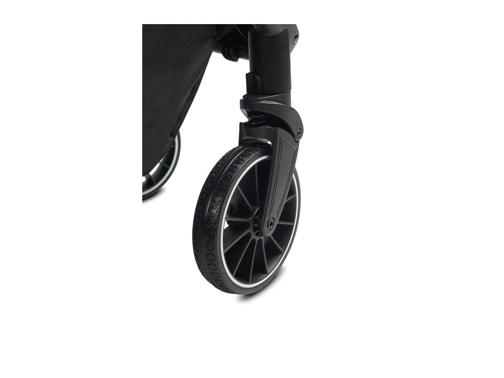 Elma je vybavená EVA penovými kolesami s odpružením, ktoré zabezpečujú plynulú jazdu aj na nerovnom teréne. 5-bodové bezpečnostné pásy s mäkkými polstrovaním zaisťujú stabilitu dieťaťa, zatiaľ čo nastaviteľná opierka chrbta a nôh umožňuje dokonalé prispôsobenie kočíka potrebám dieťaťa – od aktívneho pozorovania sveta až po pohodlný spánok.