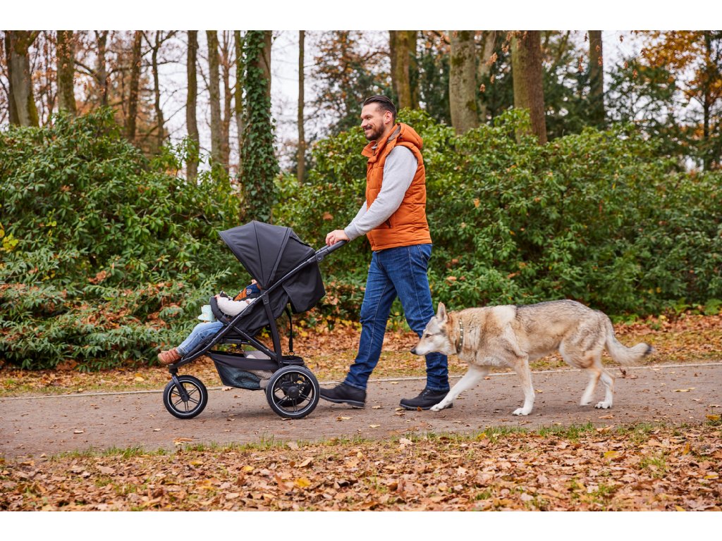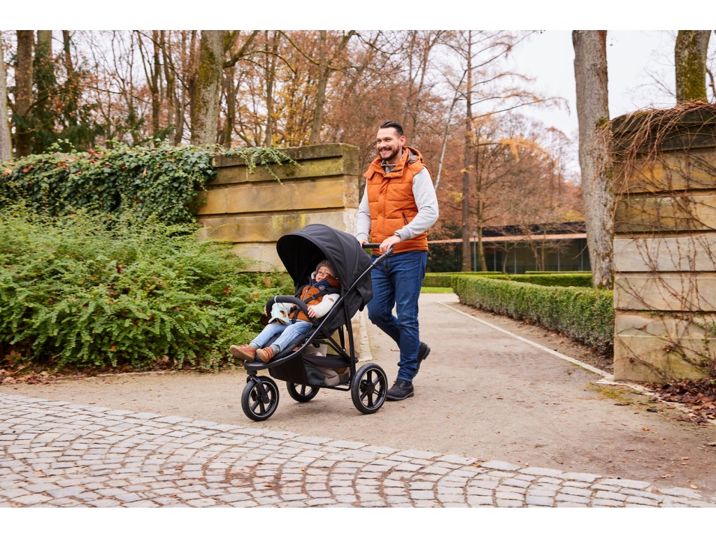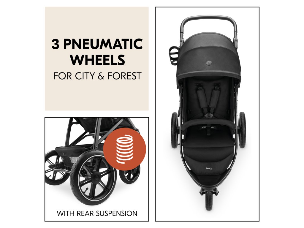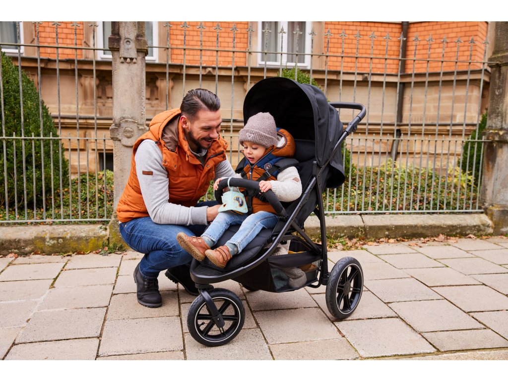 Terénny kočík // Vhodný do mesta aj do lesa - 3 nafukovacie kolesá so zadným odpružením zabezpečujú pohodlnú jazdu aj na nerovnom teréne.