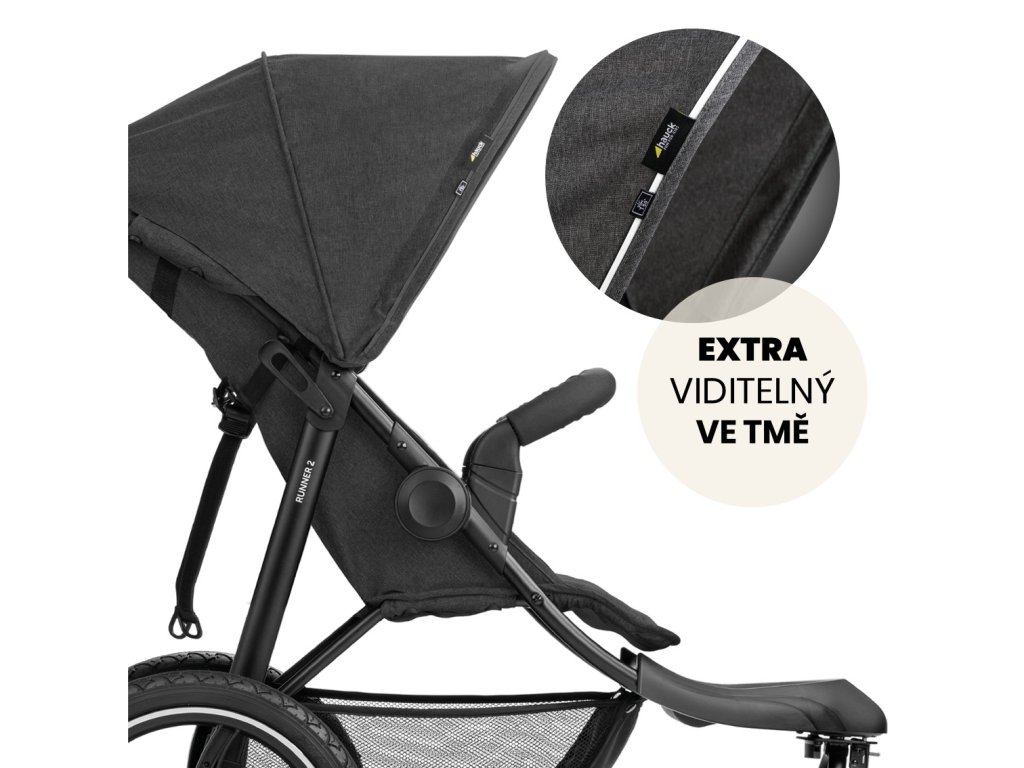 Aby sa Vaše dieťa cítilo komfortne od narodenia až do pred-školkového veku, poskytuje tento kočík XL ložnú plochu a tiež veľkú striešku s UV ochranou 50+, ktorá chráni pred slnkom a dažďom. Okrem toho je Runner 2 extra odolný voči zaťaženiu. V horúcich dňoch môžete jednoducho rozopnúť striešku a odhaliť priedušnú sieťovinu, ktorá zároveň slúži ako priezor pre neustály kontakt s dieťaťom. Reflexné pásky na strieške Vám a Vašej rodine na konci dňa dopomôžu k bezpečnému príchodu domov. Desiatu na cesty môžete jednoducho zabaliť do obrovského koša.