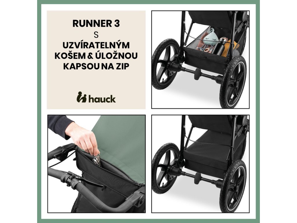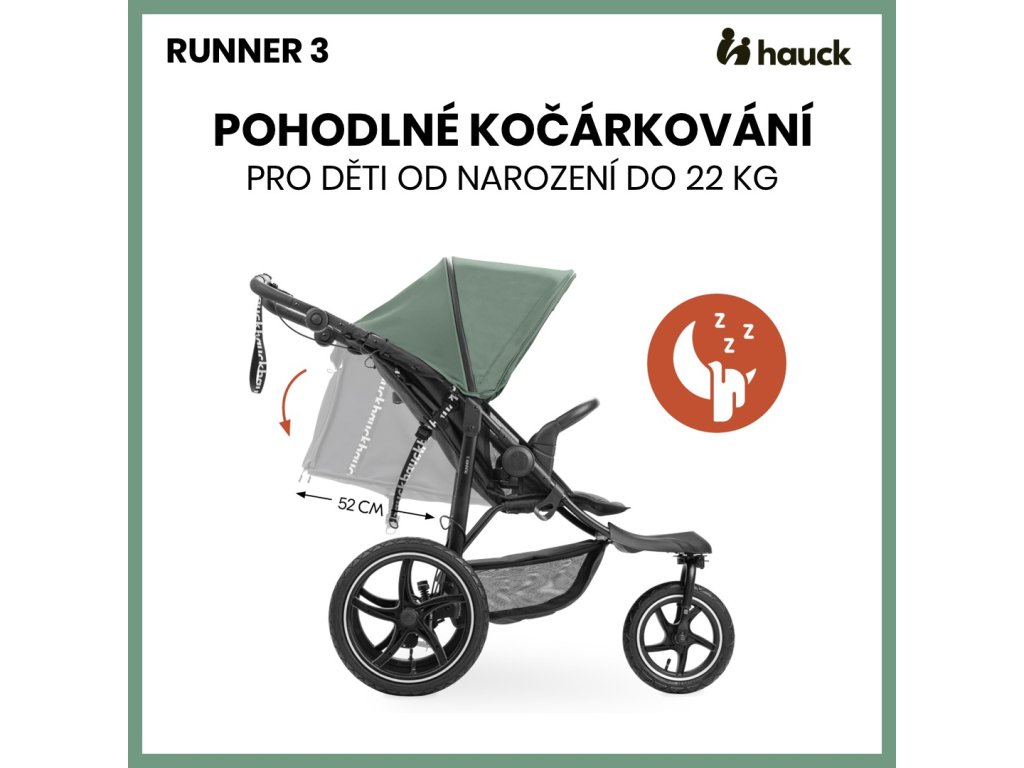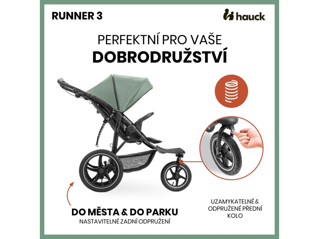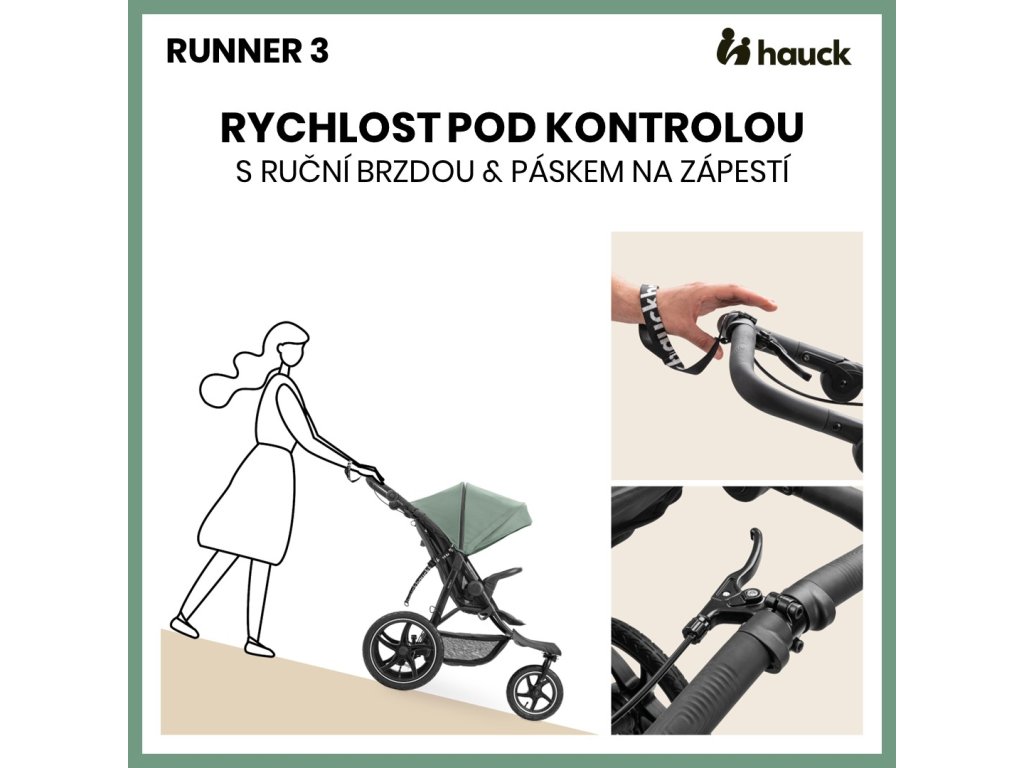Hauck Kočík športový Runner 3 s ručnou brzdou Jungle Green