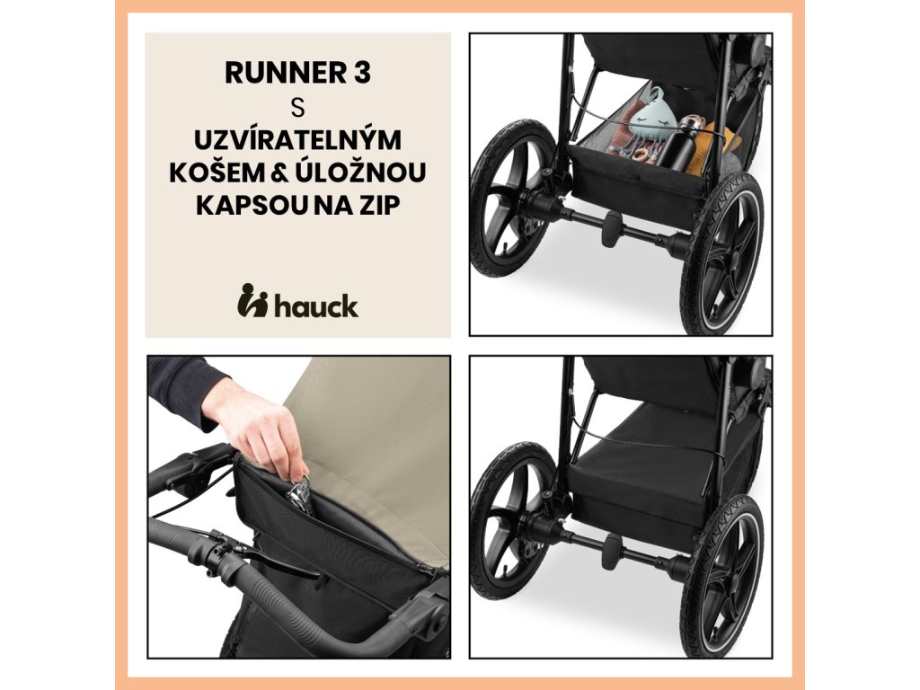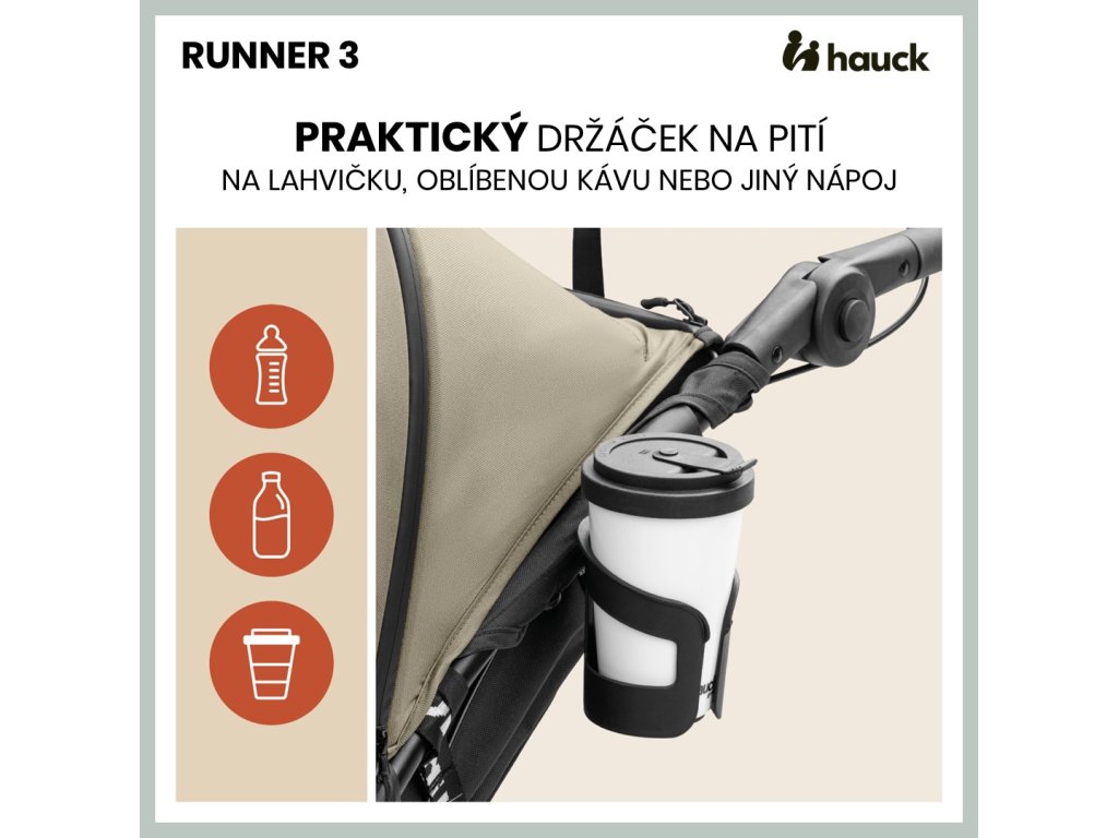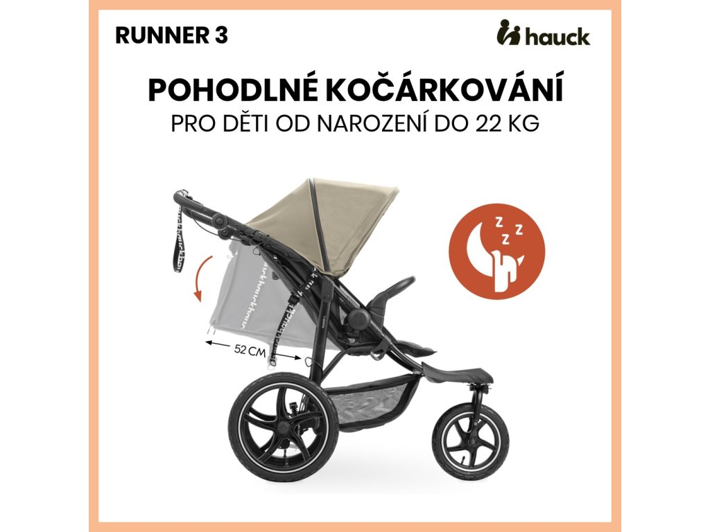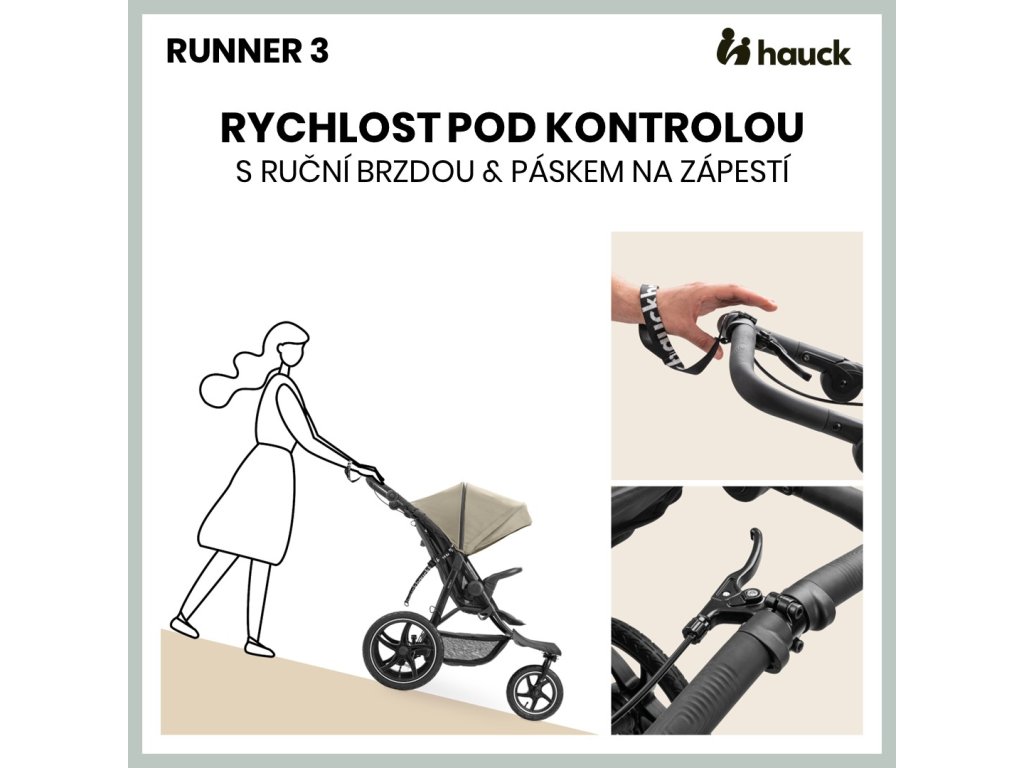 Hauck Kočík športový Runner 3 s ručnou brzdou Olive