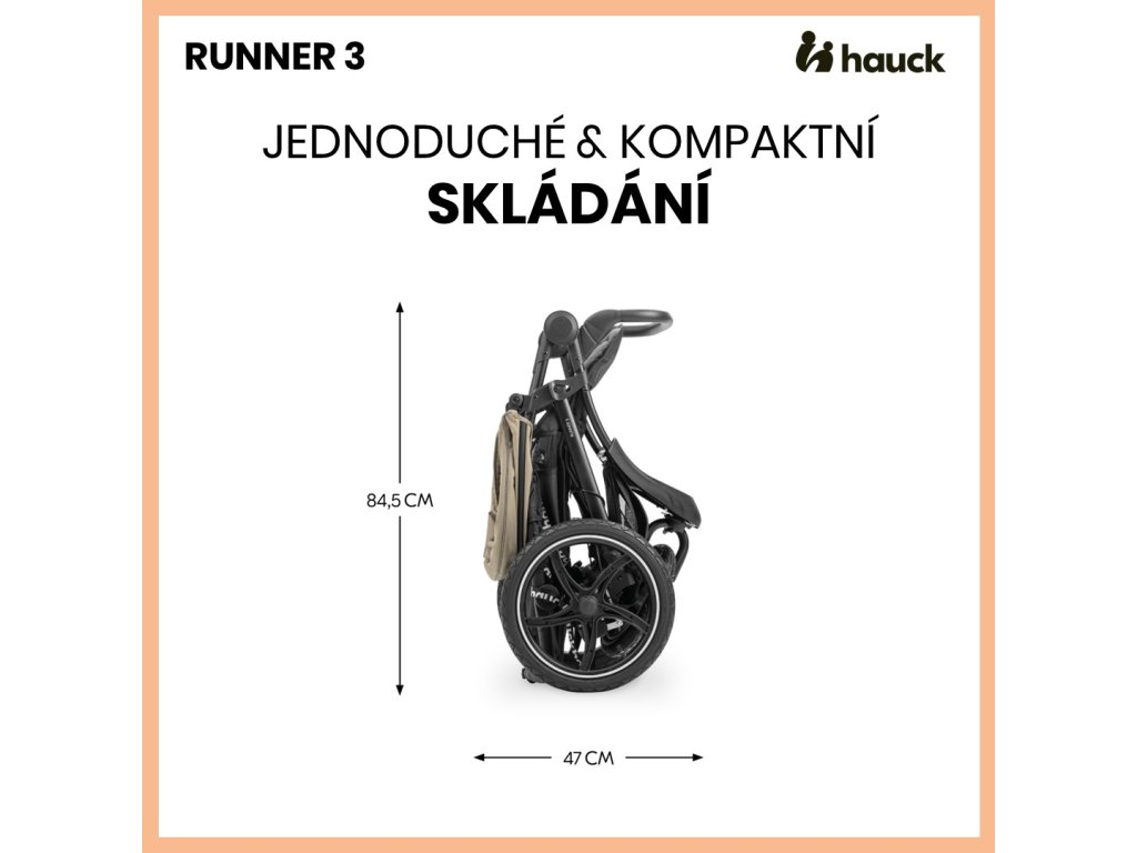 ĽAHKÉ SKLADANIE // Keď sa chystáte na výlet, nie je nič jednoduchšie, RUNNER 3 sa veľmi ľahko skladá. V prípade potreby je možné odobrať kolieska pre ešte väčšiu skladnosť.