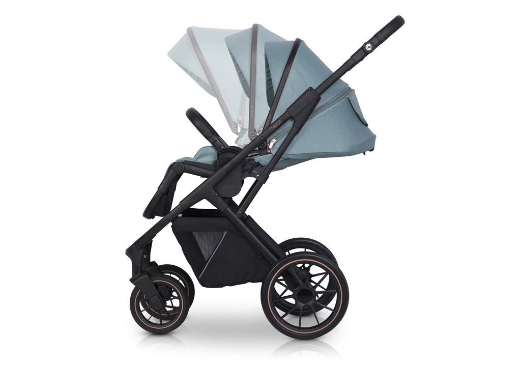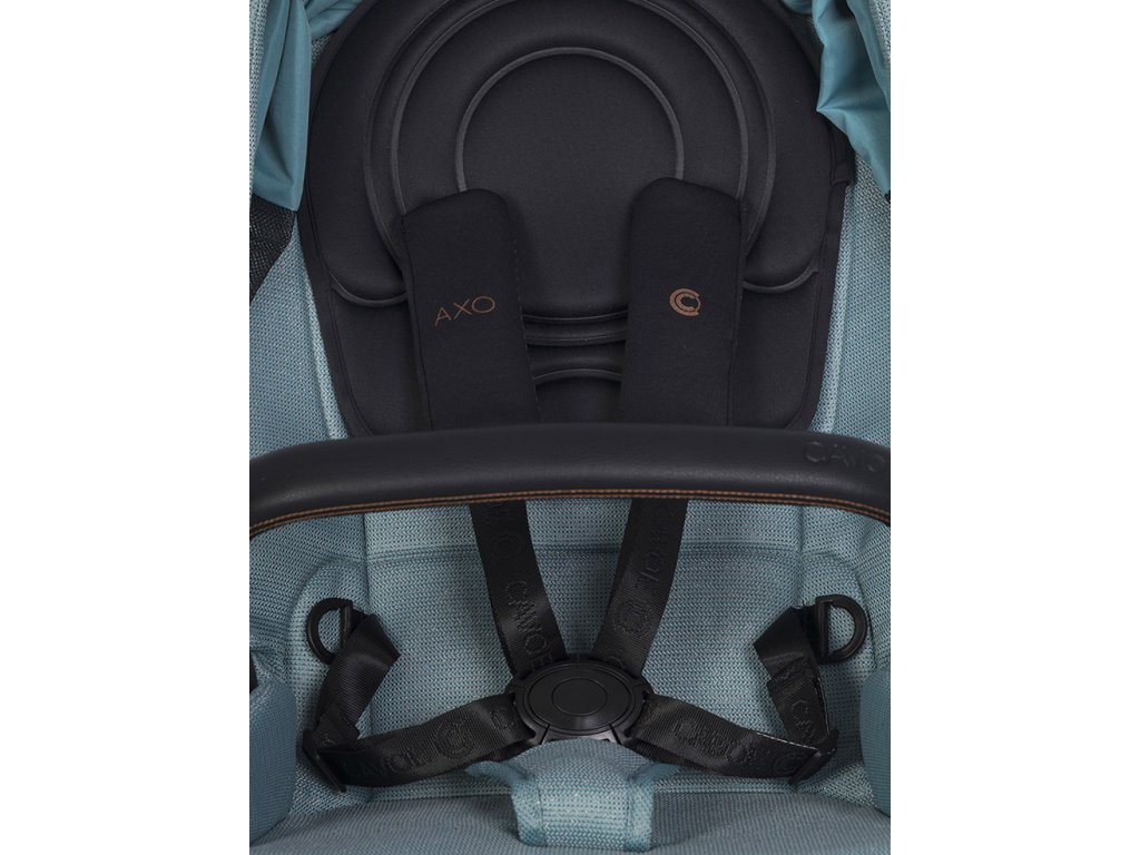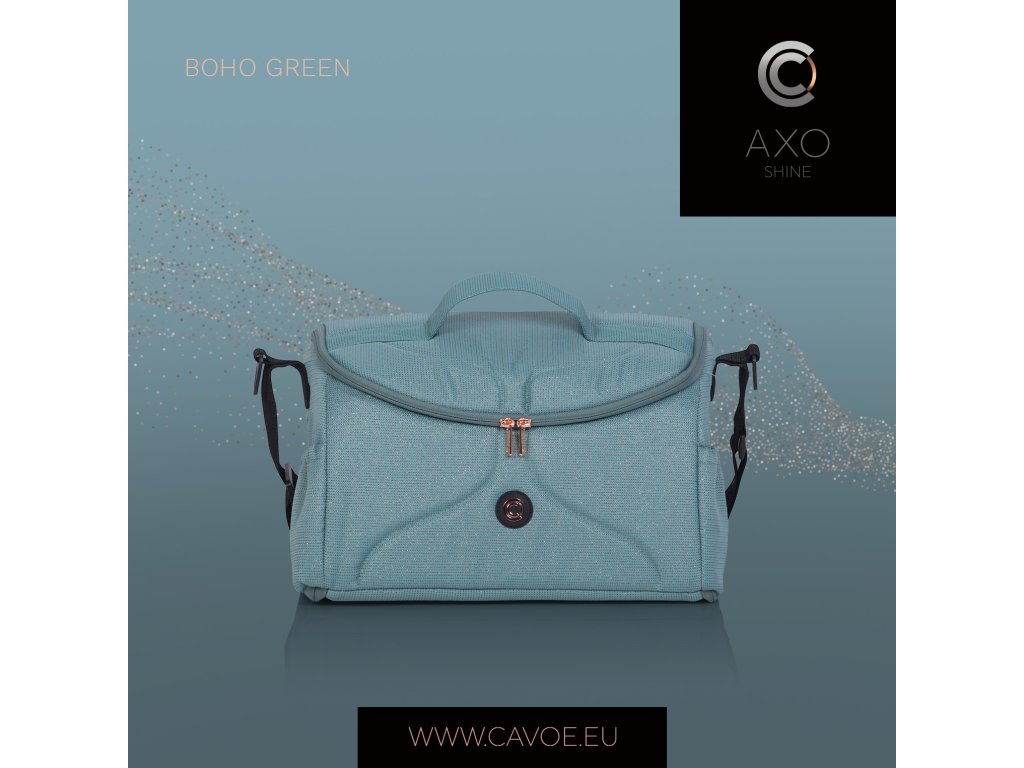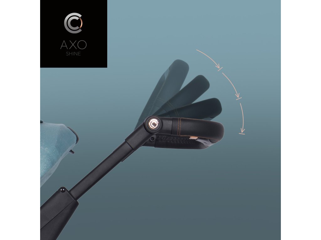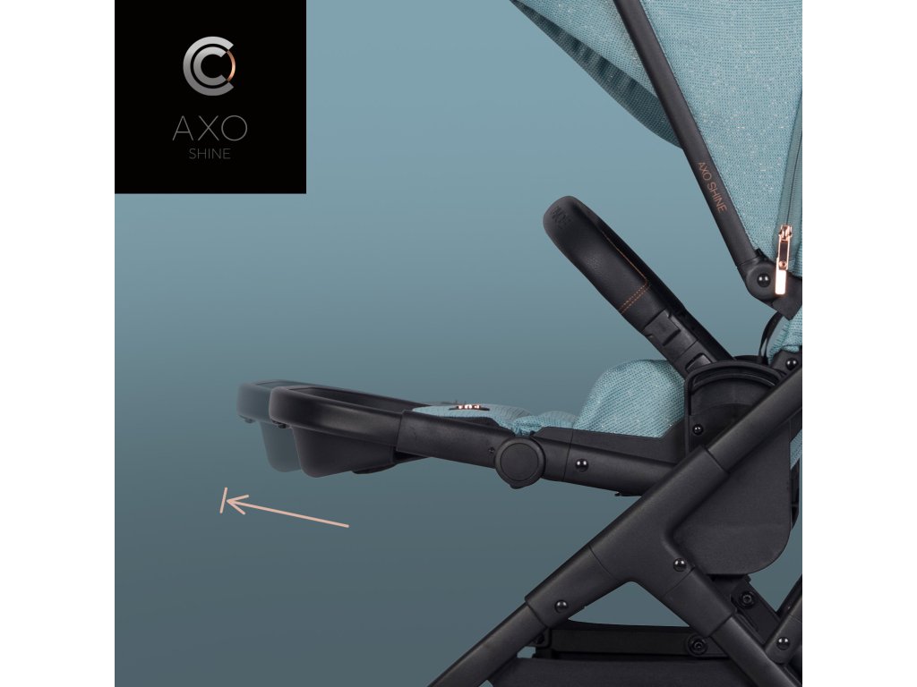 Značka CAVOE spája najvyššiu kvalitu spracovania s moderným štýlom inšpirovaným najnovšími parížskymi módnymi trendmi. Cavoe Axo Shine je najnovšia verzia obľúbeného modelu Axo, ktorá sa vyznačuje jemnou pastelovou farebnosťou a látkami s medenými odleskami, čo dodáva kolekcii "Shine" jej názov. Tento kočík je dostupný v štyroch módnych farebných variantoch: Champagne (zlatá béžová), Flamingo (lososová ružová), Boho Green (keramická zelená) a French Grey (odtiene šedej).