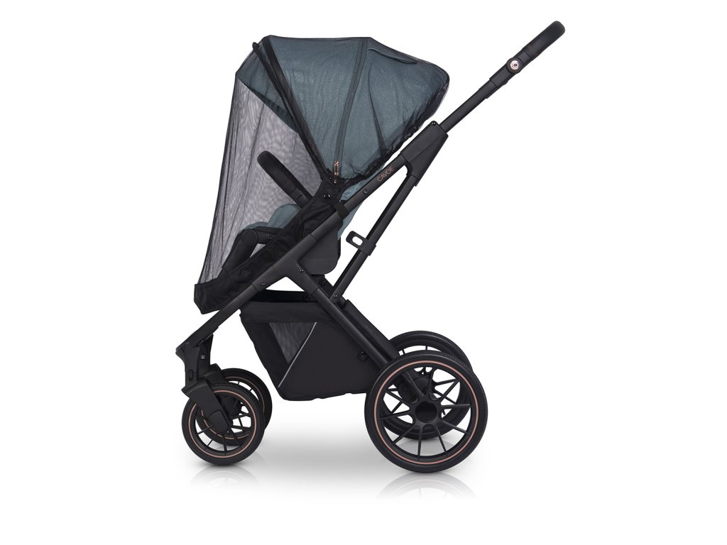 - Nastaviteľná výška rukoväte: Umožňuje pohodlné vedenie kočíka pre rodičov rôznej výšky, s elegantnými kovovými prvkami vo farbe Rose Gold.