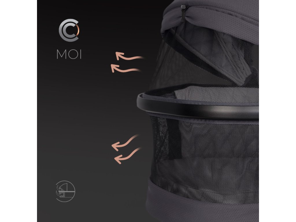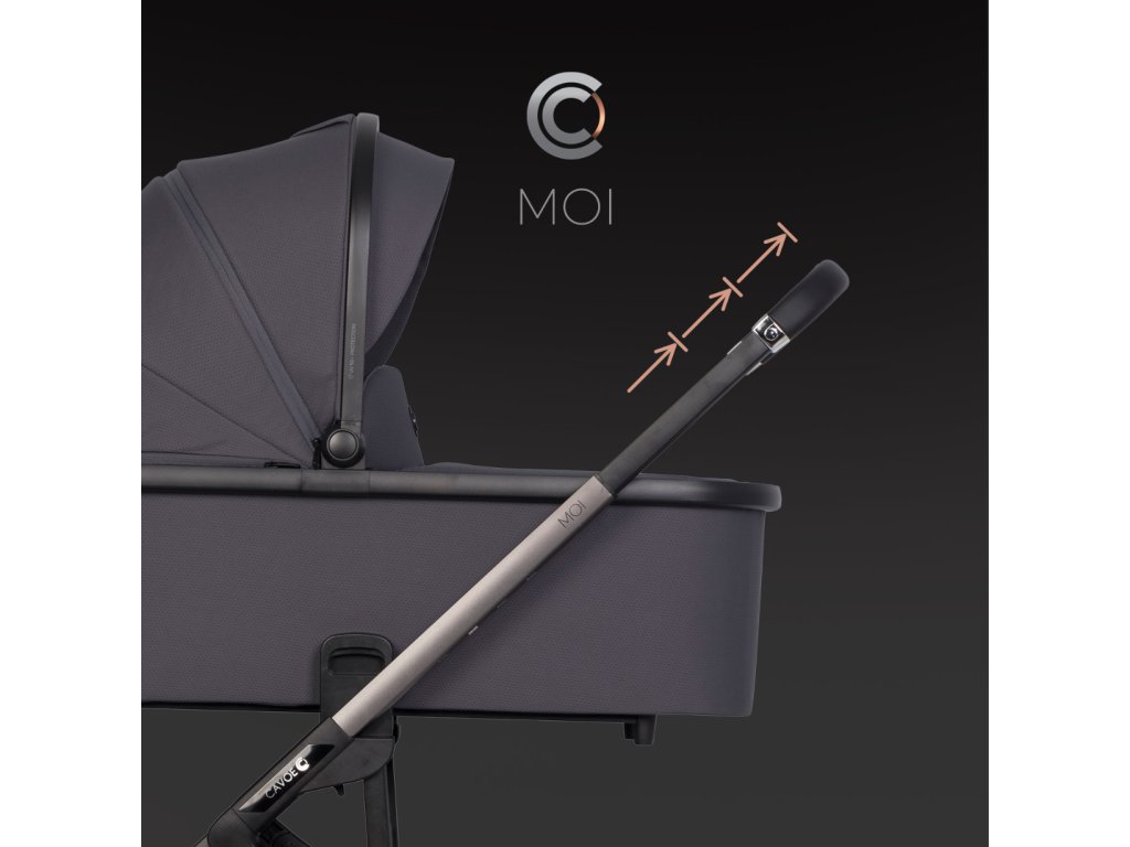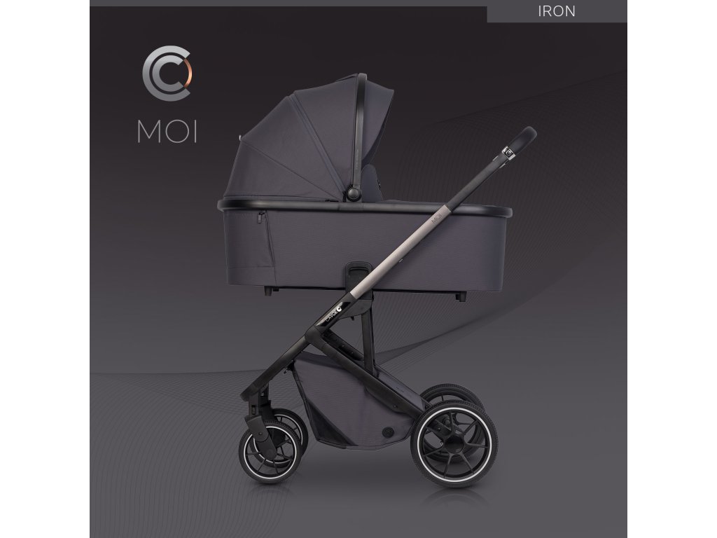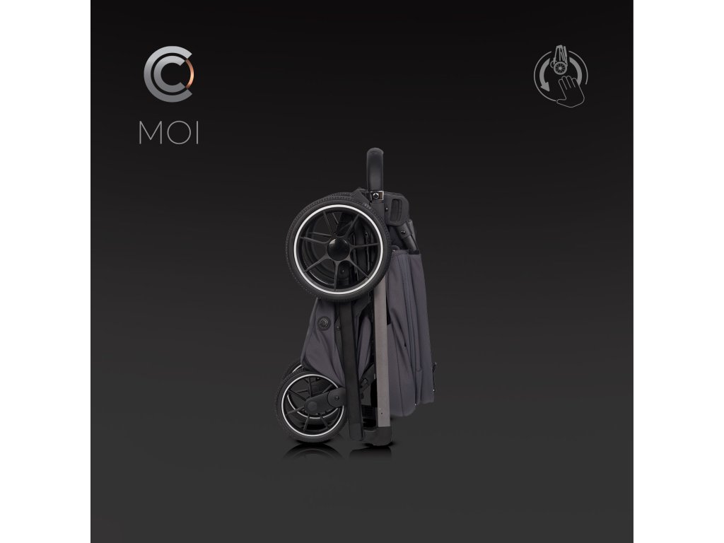 Cavoe Moi Iron MOI je moderný športový kočík, ktorý spája jedinečný štýl s všestrannou funkčnosťou. Tento inovatívny kočík sa vyznačuje teleskopickým systémom skladania, vďaka ktorému sa dá zložiť do kompaktných rozmerov, či už je sedadlo namontované v smere alebo proti smeru jazdy. Po zložení kočík zostáva stáť na kolesách, čo eliminuje riziko znečistenia poťahu alebo poškriabania konštrukcie. Vďaka možnosti postavenia v zvislej polohe ho možno ľahko ťahať ako kufor.
