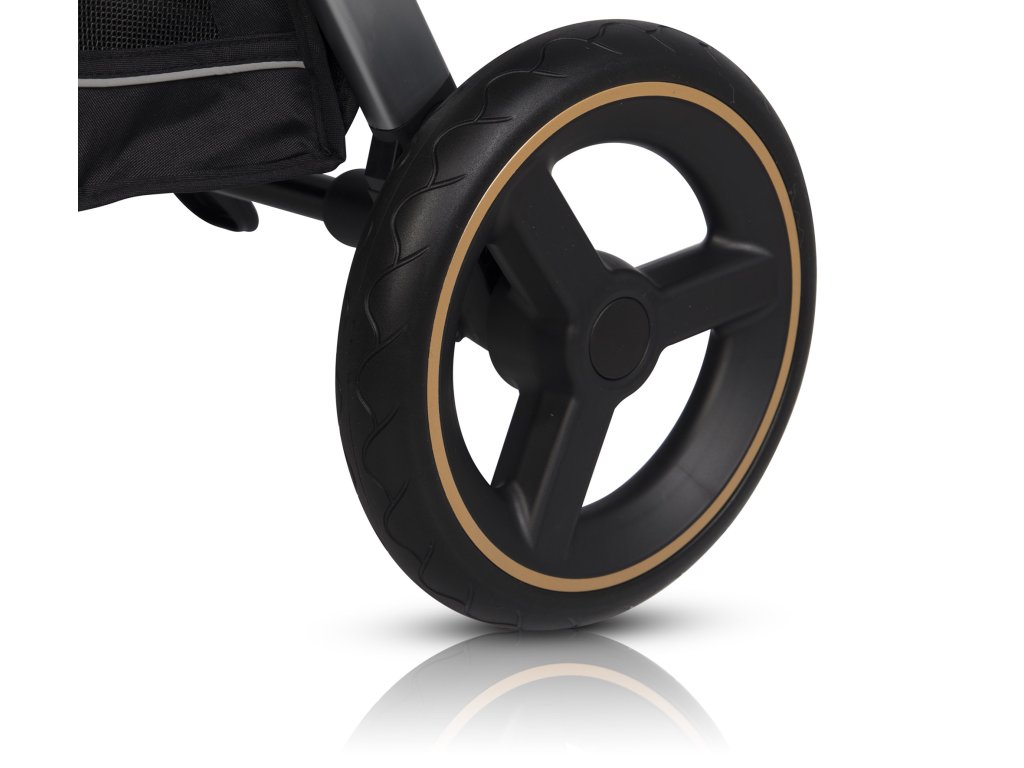 - Kompaktné skladanie: Aj napriek väčším kolesám a sedadlu sa kočík skladá do kompaktnej veľkosti podobnej predchádzajúcej verzii.
