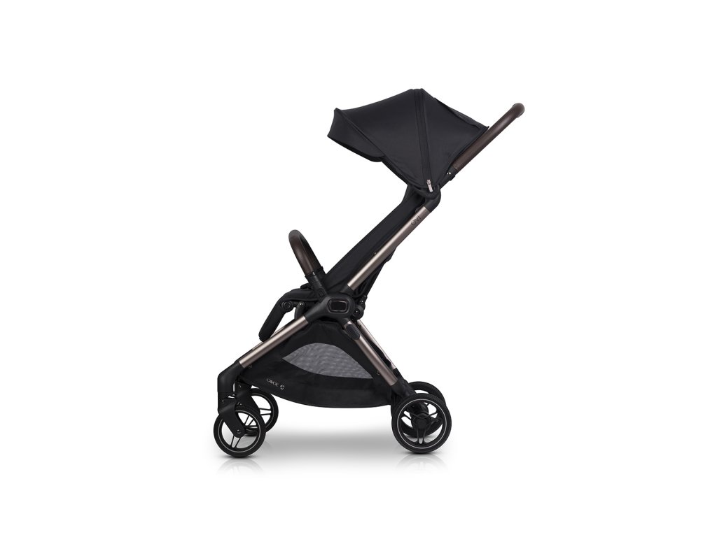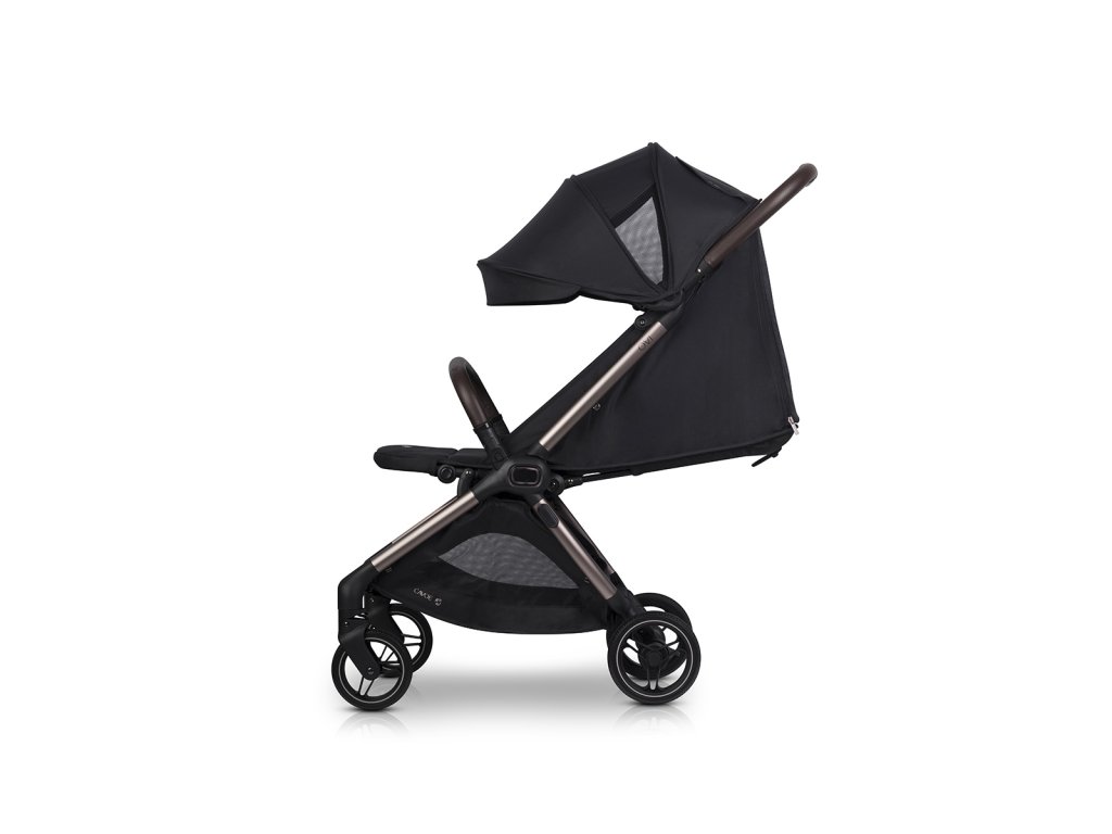 CAVOE OVI je produktom prémiové triedy, ktorý spĺňa očakávania aj tých najnáročnejších rodičov. Kovové prvky rámu sú anodizované v elegantnej hnedo-šampanským farbe, čo nielen dodáva kočíku luxusný vzhľad, ale aj výrazne zvyšuje odolnosť proti poškriabaniu v porovnaní so štandardnými lakovými povrchmi.