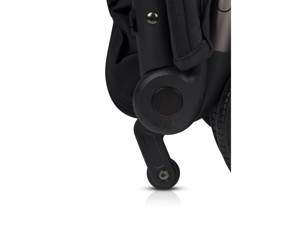 Vďaka správnemu vyváženiu rámu sa kočík ľahko naklápí na zadné kolesá, čo oceníte napríklad pri najazde na obrubník. Široký rozchod predných kolies zaisťuje vyššiu manévrovateľnosť, takže sa s kočíkom ľahko pohybujete aj v úzkych priestoroch obchodov či kaviarní.