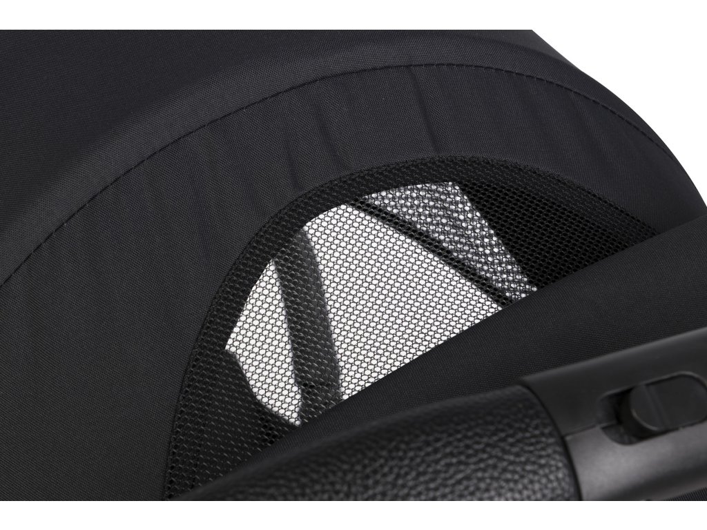 - Praktická slnečná strieška: Strieška s tichým systémom nastavenia a dodatočnou rozkladacou sekciou chráni dieťa pred slnkom. Obsahuje aj okienko na sledovanie dieťaťa a veľký ventilačný panel so sieťkou.