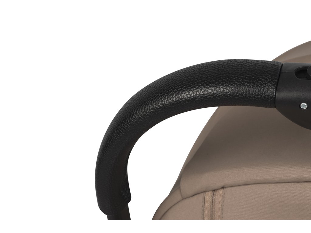 - Elegantné detaily: Rukoväť a ochranná bariéra sú potiahnuté kvalitnou ekologickou kožou, ktorá je ľahko udržiavateľná. Použité tkaniny typu Oxford v moderných farbách sú zdobené kovovými emblémami.