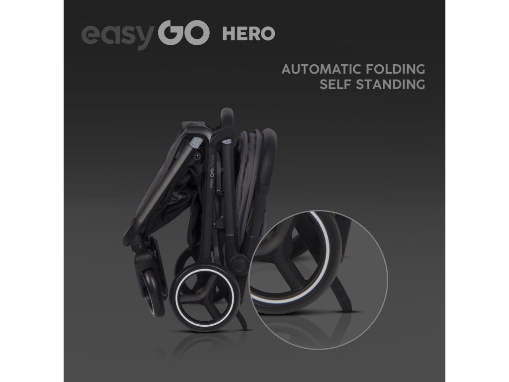 Hľadáte ideálny kočík pre aktívnych rodičov? Športový kočík EasyGo HERO je perfektnou voľbou pre tých, ktorí hľadajú ľahký, jednoducho skladací a štýlový kočík s veľkým sedadlom pre svoje dieťa. Tento kočík je vybavený automatickým systémom skladania, ktorý umožňuje zloženie jednou rukou do voľne stojacej pozície. S hmotnosťou len 7,9 kg a kompaktnými rozmermi po zložení je HERO ideálny pre časté cestovanie a jednoduché prenášanie.