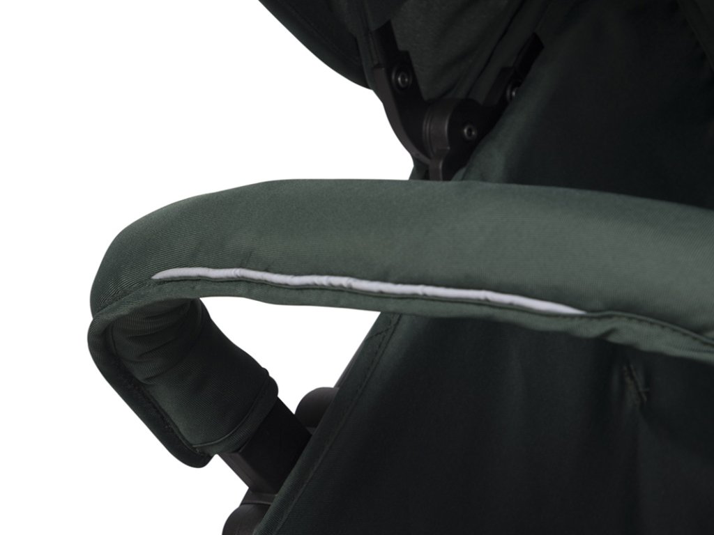 - Pohodlné sedadlo: Mäkké sedadlo je napnuté na ráme kočíka, čo zvyšuje komfort a eliminuje tvrdé plochy.