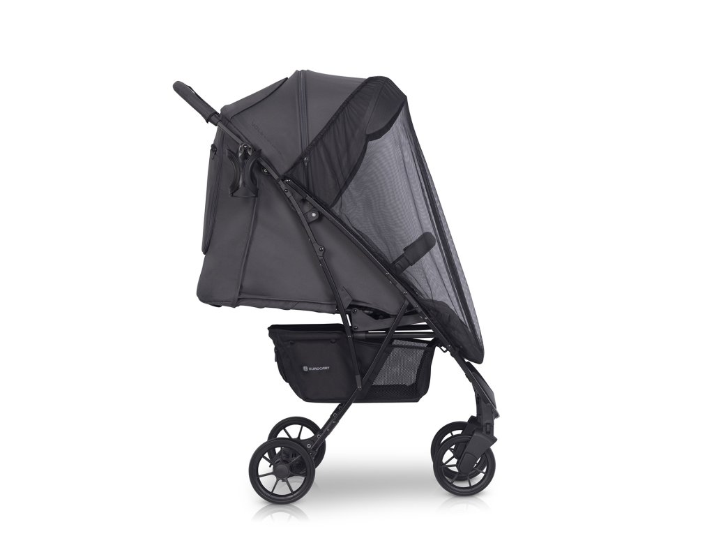 - Ochrana pred počasím: Plná pláštenka s ventilačnými otvormi, sieťka proti hmyzu a prikrývka na nohy.