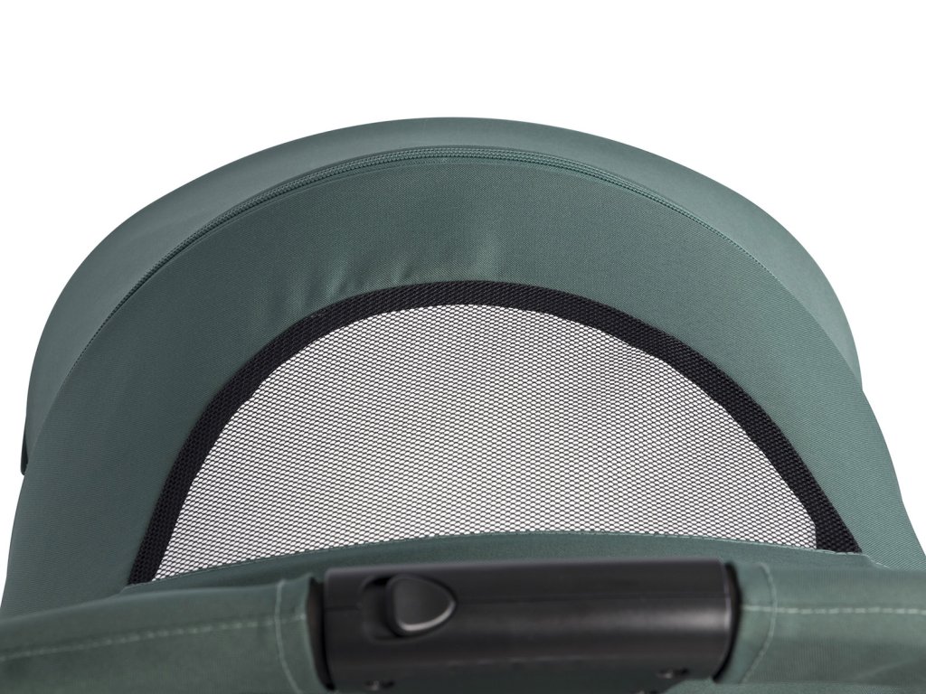 - Praktické detaily: Slnečná strieška s dodatočnou sekciou a ventiláciou, bezpečnostná bariérka s bočným otváraním, priestranný košík a zadné vrecko s ventilačným panelom.