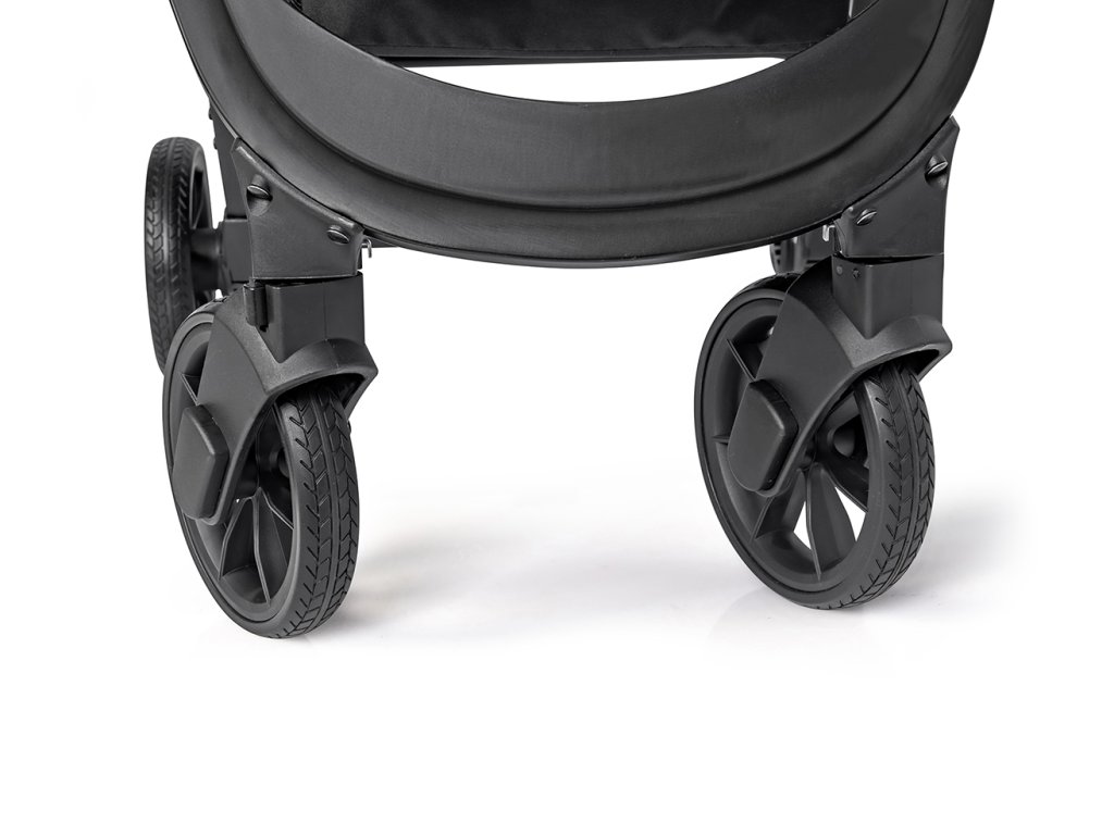 - Jednoduchá manipulácia: Otočné predné kolesá s možnosťou blokácie, automatická blokácia zloženého kočíka a množstvo ďalších praktických prvkov ako držiak na fľašu a transportná taška.