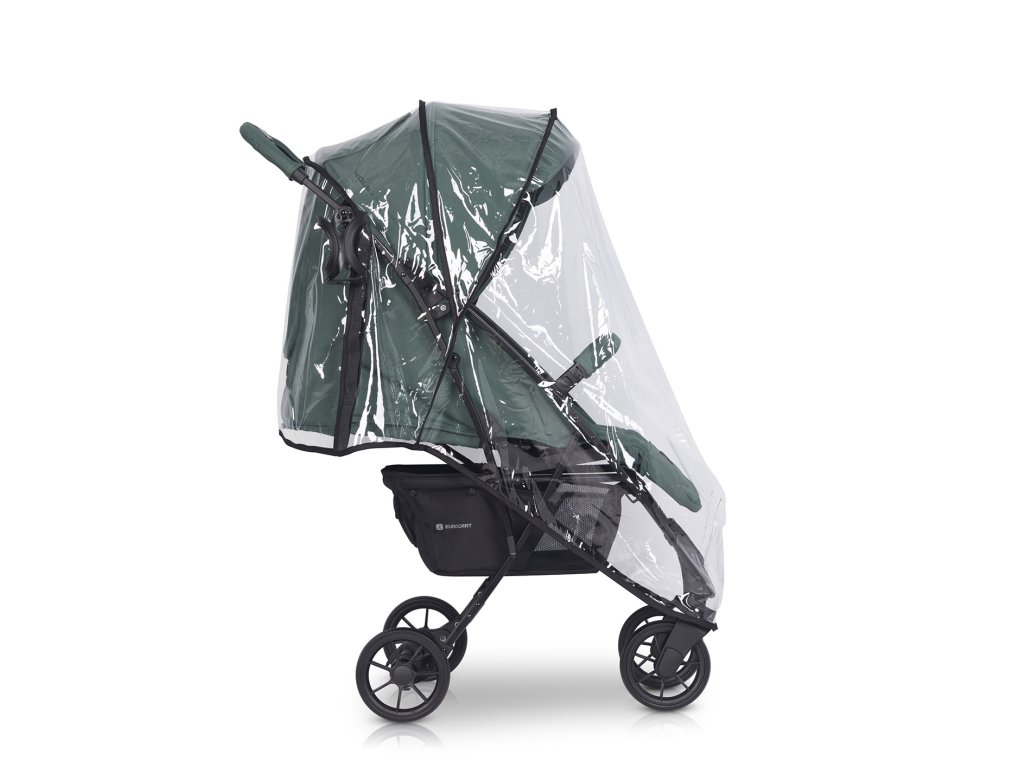 - Ochrana pred počasím: Plná pláštenka s ventilačnými otvormi, sieťka proti hmyzu a prikrývka na nohy.