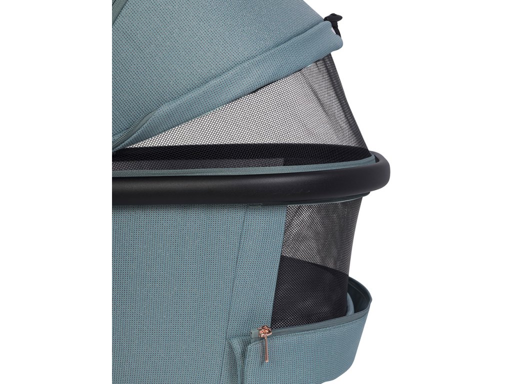 • Štandardná ventilácia v budke s rozopínateľnou sekciou • Veľký ventilačný panel v prednej časti vaničky s tesným uzáverom • Veľký ventilačný panel v zadnej časti vaničky s tesným uzáverom • Optimálna cirkulácia vzduchu vo vnútri vaničky pre maximálne pohodlie dieťaťa