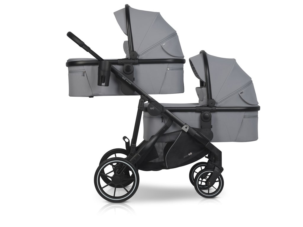 Čakáte dvojčatá? DUOFLEX možno nakonfigurovať aj ako kočík pre dvojčatá. Stačí objednať verziu s dvoma hlbokými vaničkami a dvoma sedadlami.