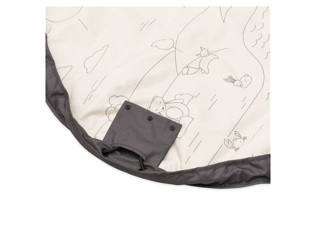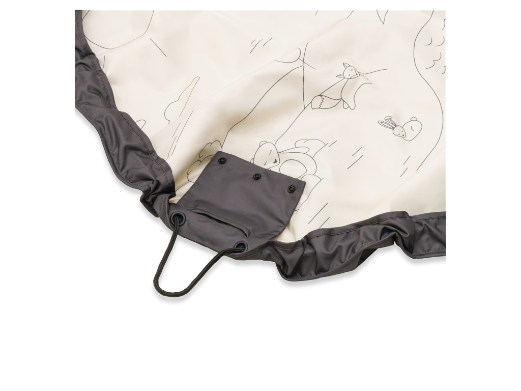 Keď je čas na zábavu, stačí deku rozložiť a šnúrku schovať do šikovného vrecka v leme deky. Vrecko sa dá ľahko zapnúť, takže šnúrka pri hre neprekáža.