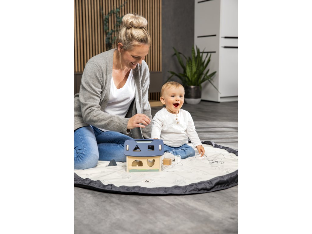 Stačí jedno zatiahnutie za silnú šnúru a z hracej deky sa stane praktická a ľahká taška na uskladnenie hračiek všetkého druhu. Mimoriadne pevná šnúra zaisťuje bezpečné uloženie hračiek. Ideálna aj na cestovanie.