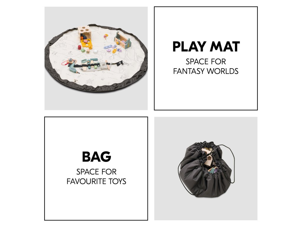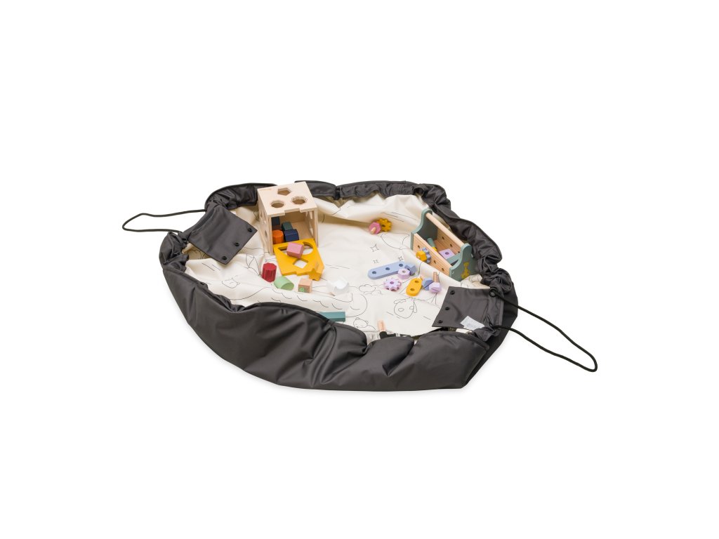 Hra sa skončila, je čas upratať. Zabudnite na zdĺhavé a nezáživné upratovanie. Stačí jeden pohyb a zatiahnutie za pevnú šnúru a z hracej podložky sa zrazu stane praktická taška na uskladnenie hračiek všetkého druhu.