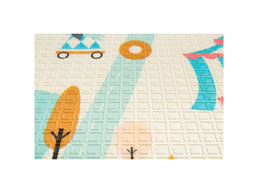 Multifunkčná podložka TOYZ je dokonalým riešením pre usporiadanie detského kútika. Má mnoho výhod, ktoré ju uprednostňujú pred látkovými podložkami: nekrčí sa ani nekrúti, veľmi ťažko sa pohybuje a ľahko sa udržiava v čistote. Jej rozmery 200 x 180 cm ponúkajú dostatok priestoru na hranie alebo učenie sa chodiť. Pretože je vyrobený z hrubej XPE peny, zaisťuje mäkké pristátie v prípade pádu a tiež izoluje proti chladu. Obojstranné prevedenie umožňuje meniť tému a spestriť zábavu. Podložka má tašku, ktorá uľahčuje jej skladovanie a prepravu.