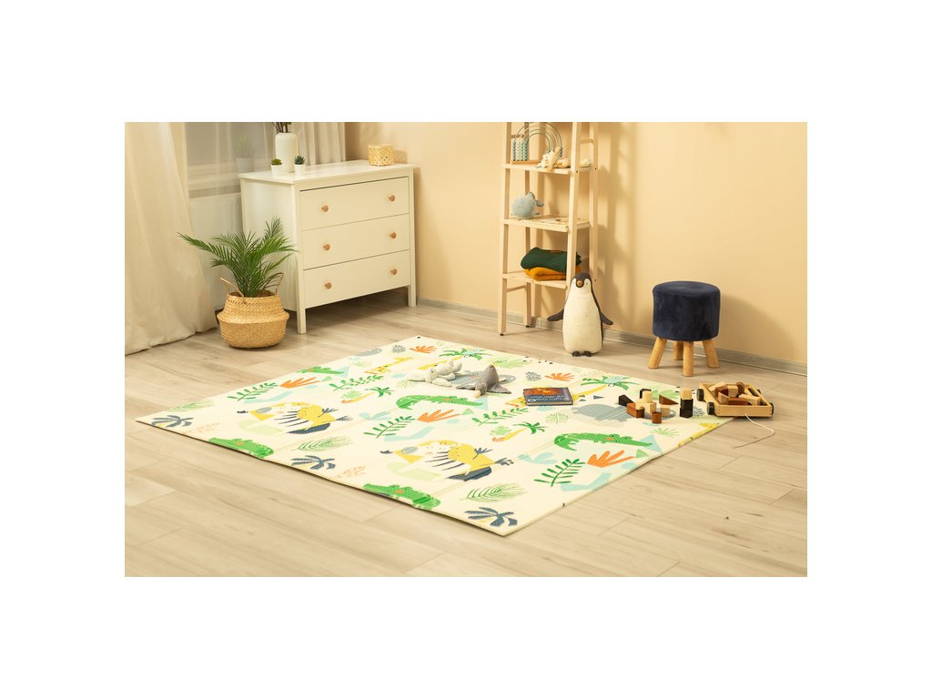 Multifunkčná podložka TOYZ je dokonalým riešením pre usporiadanie detského kútika. Má mnoho výhod, ktoré ju uprednostňujú pred látkovými podložkami: nekrčí sa ani nekrúti, veľmi ťažko sa pohybuje a ľahko sa udržiava v čistote. Jej rozmery 200 x 180 cm ponúkajú dostatok priestoru na hranie alebo učenie sa chodiť. Pretože je vyrobený z hrubej XPE peny, zaisťuje mäkké pristátie v prípade pádu a tiež izoluje proti chladu. Obojstranné prevedenie umožňuje meniť tému a spestriť zábavu. Podložka má tašku, ktorá uľahčuje jej skladovanie a prepravu.