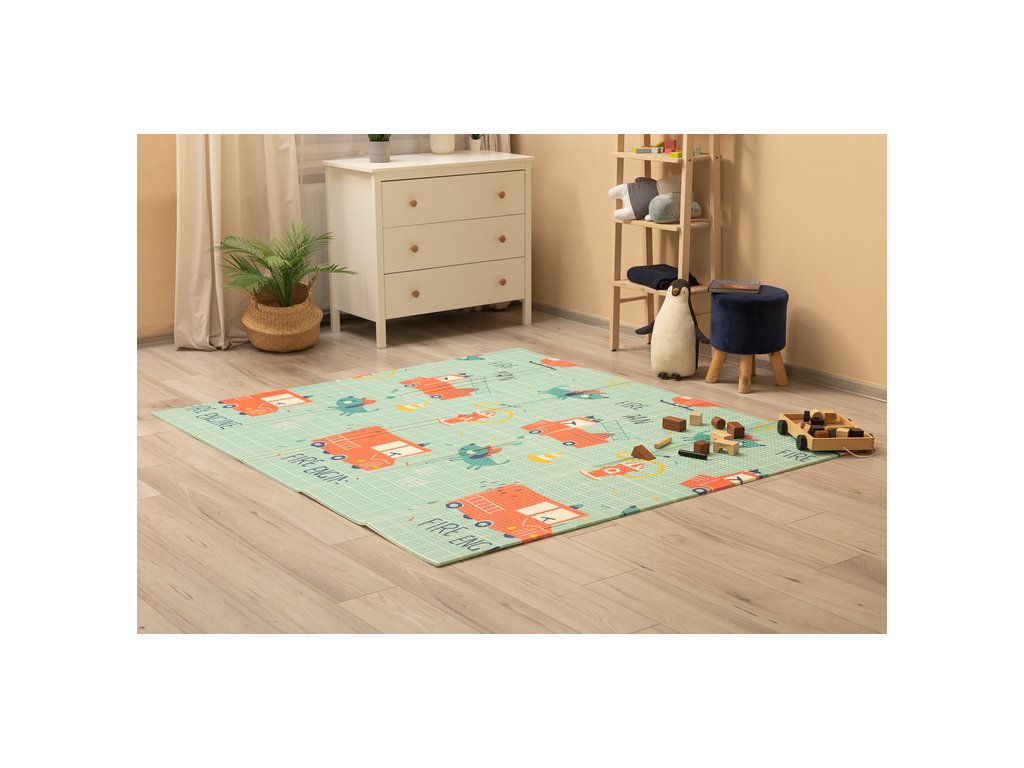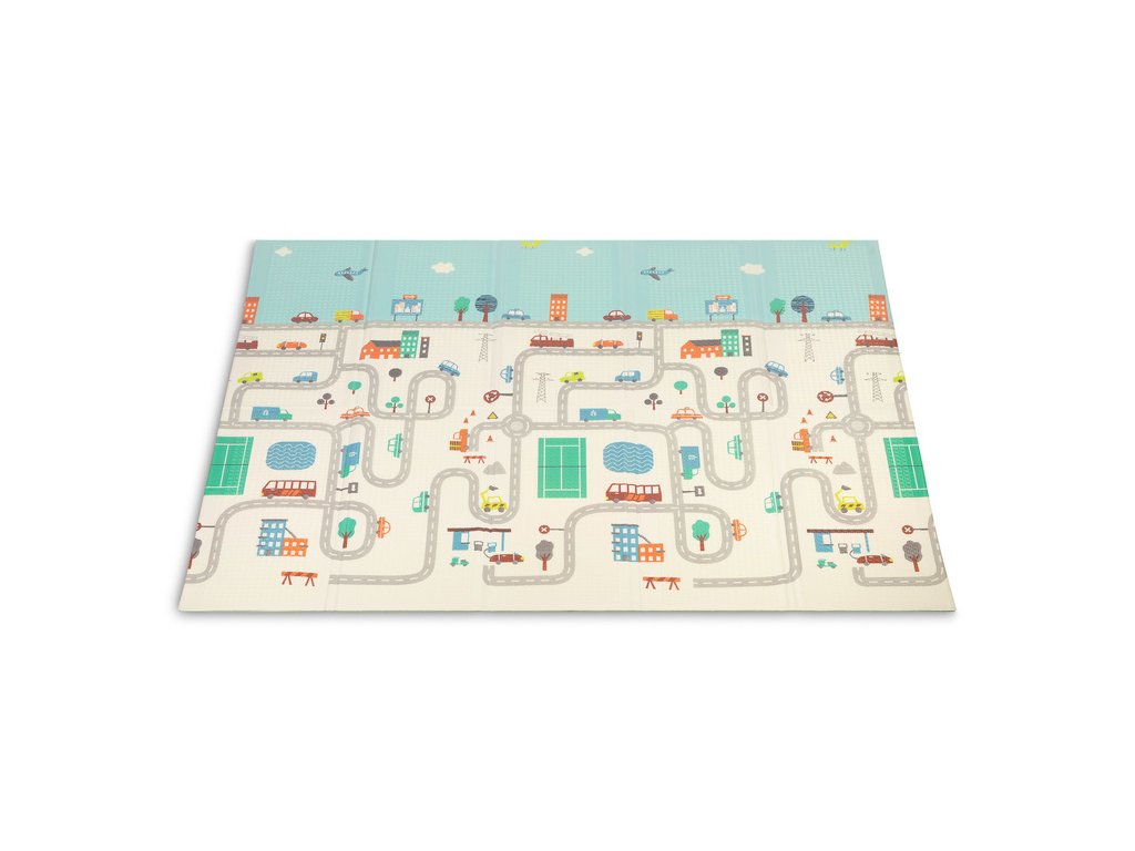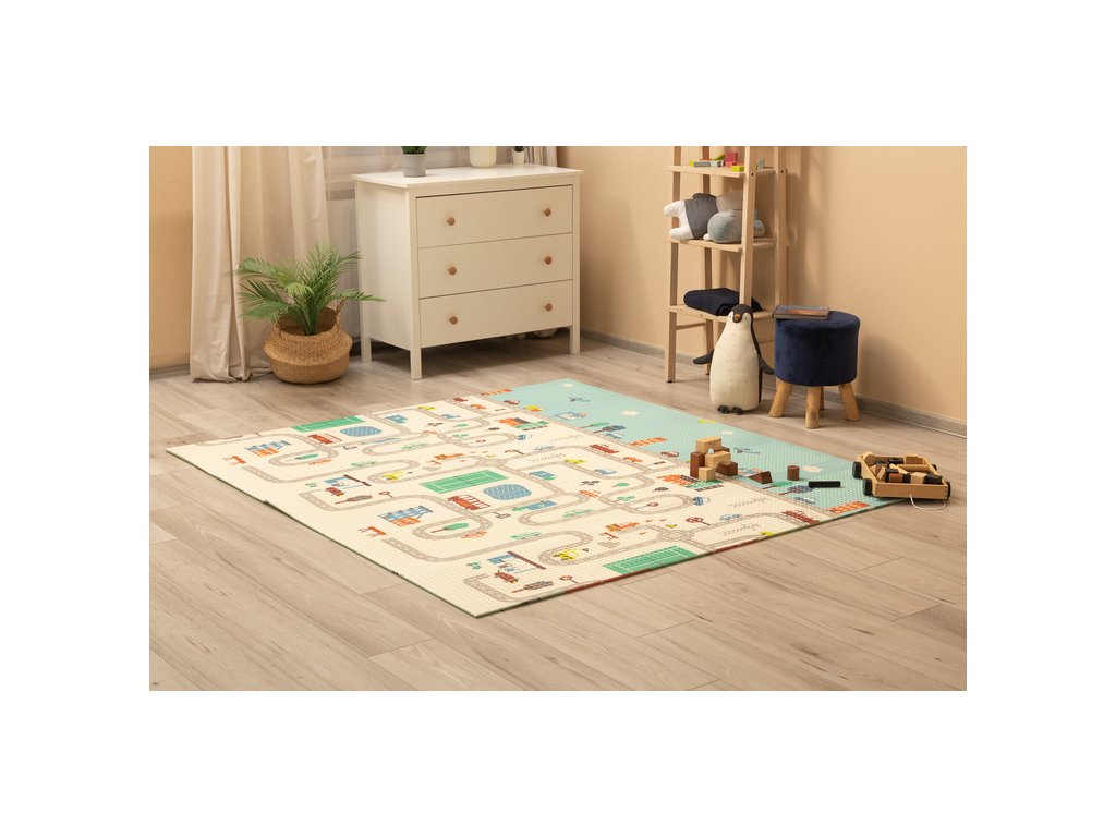 Multifunkčná podložka TOYZ je dokonalým riešením pre usporiadanie detského kútika. Má mnoho výhod, ktoré ju uprednostňujú pred látkovými podložkami: nekrčí sa ani nekrúti, veľmi ťažko sa pohybuje a ľahko sa udržiava v čistote. Jej rozmery 200 x 180 cm ponúkajú dostatok priestoru na hranie alebo učenie sa chodiť. Pretože je vyrobený z hrubej XPE peny, zaisťuje mäkké pristátie v prípade pádu a tiež izoluje proti chladu. Obojstranné prevedenie umožňuje meniť tému a spestriť zábavu. Podložka má tašku, ktorá uľahčuje jej skladovanie a prepravu.