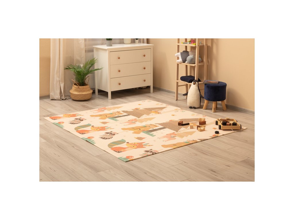 Multifunkčná podložka TOYZ je dokonalým riešením pre usporiadanie detského kútika. Má mnoho výhod, ktoré ju uprednostňujú pred látkovými podložkami: nekrčí sa ani nekrúti, veľmi ťažko sa pohybuje a ľahko sa udržiava v čistote. Jej rozmery 200 x 180 cm ponúkajú dostatok priestoru na hranie alebo učenie sa chodiť. Pretože je vyrobený z hrubej XPE peny, zaisťuje mäkké pristátie v prípade pádu a tiež izoluje proti chladu. Obojstranné prevedenie umožňuje meniť tému a spestriť zábavu. Podložka má tašku, ktorá uľahčuje jej skladovanie a prepravu.