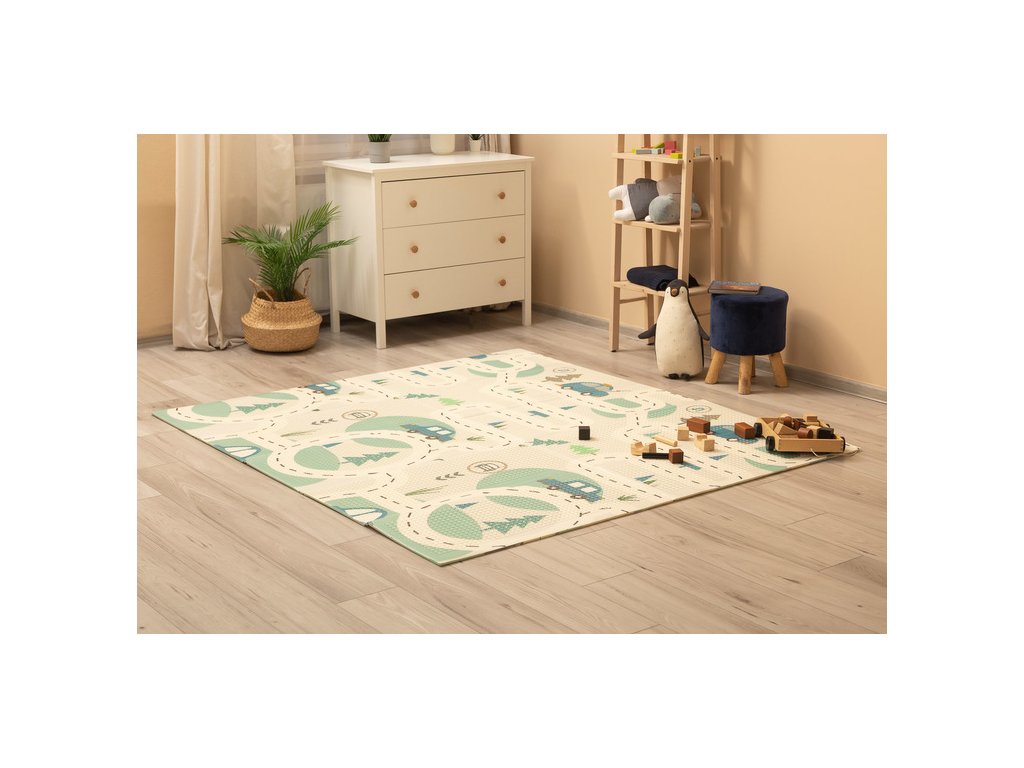Multifunkčná podložka TOYZ je dokonalým riešením pre usporiadanie detského kútika. Má mnoho výhod, ktoré ju uprednostňujú pred látkovými podložkami: nekrčí sa ani nekrúti, veľmi ťažko sa pohybuje a ľahko sa udržiava v čistote. Jej rozmery 200 x 180 cm ponúkajú dostatok priestoru na hranie alebo učenie sa chodiť. Pretože je vyrobený z hrubej XPE peny, zaisťuje mäkké pristátie v prípade pádu a tiež izoluje proti chladu. Obojstranné prevedenie umožňuje meniť tému a spestriť zábavu. Podložka má tašku, ktorá uľahčuje jej skladovanie a prepravu.