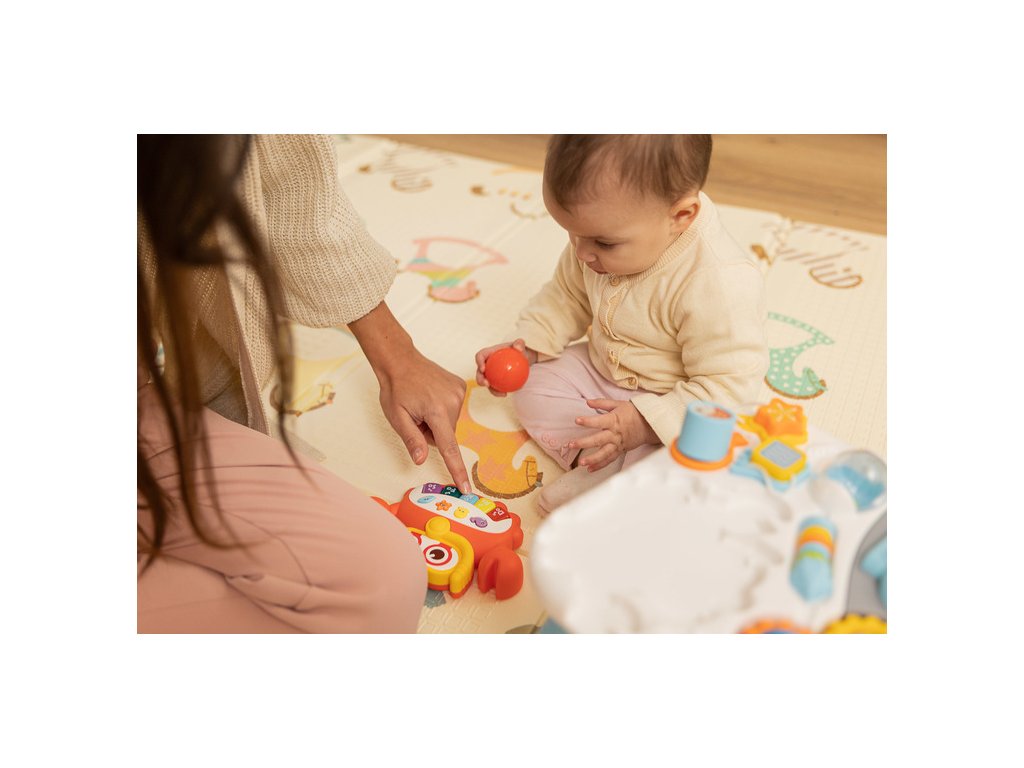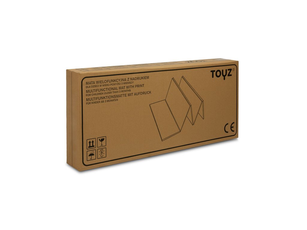 Multifunkčná podložka TOYZ je dokonalým riešením pre usporiadanie detského kútika. Má mnoho výhod, ktoré ju uprednostňujú pred látkovými podložkami: nekrčí sa ani nekrúti, veľmi ťažko sa pohybuje a ľahko sa udržiava v čistote. Jej rozmery 200 x 180 cm ponúkajú dostatok priestoru na hranie alebo učenie sa chodiť. Pretože je vyrobený z hrubej XPE peny, zaisťuje mäkké pristátie v prípade pádu a tiež izoluje proti chladu. Obojstranné prevedenie umožňuje meniť tému a spestriť zábavu. Podložka má tašku, ktorá uľahčuje jej skladovanie a prepravu.