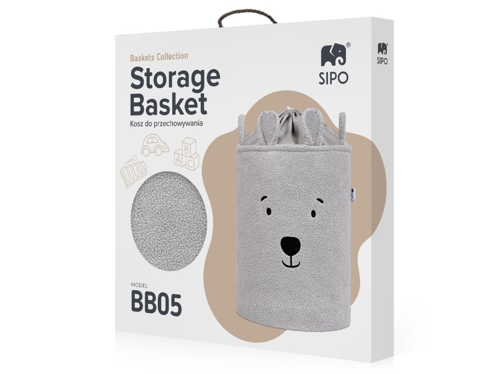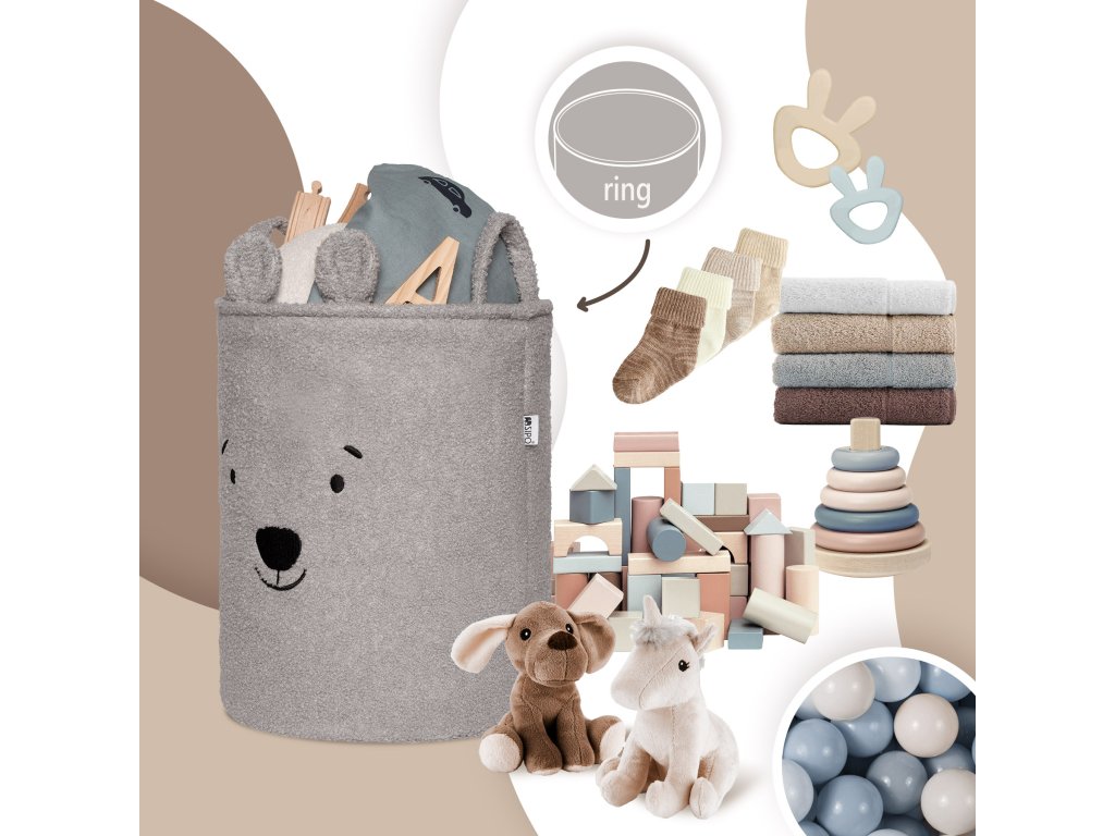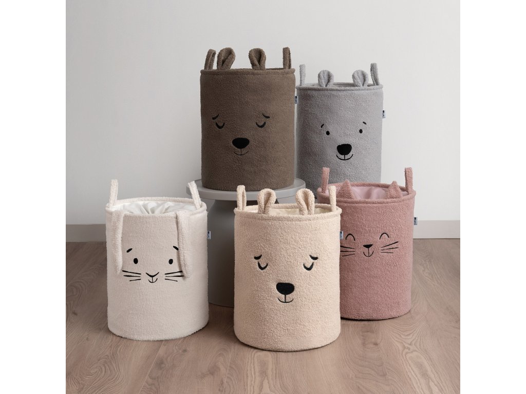 S objemom 43 litrov je kôš ideálny na použitie v detskej izbe, obývacej izbe, spálni alebo kúpeľni – poskytuje pohodlný úložný priestor na hračky, textil a doplnky bez toho, aby zaberal príliš veľa miesta. Vonkajšia vrstva je vyrobená z mäkkého, nadýchaného bouclé materiálu, ktorý prirodzene podnecuje dotyk a interakciu. Priateľské motívy zvieratiek – ako napríklad roztomilý medvedík – pomáhajú vytvoriť emocionálne spojenie s produktom a premeniť upratovanie na zábavnú činnosť namiesto povinnosti.