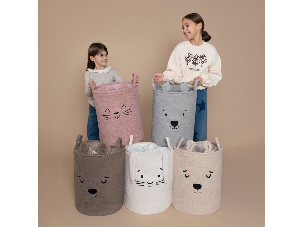 S objemom 43 litrov je kôš ideálny na použitie v detskej izbe, obývacej izbe, spálni alebo kúpeľni – poskytuje pohodlný úložný priestor na hračky, textil a doplnky bez toho, aby zaberal príliš veľa miesta. Vonkajšia vrstva je vyrobená z mäkkého, nadýchaného bouclé materiálu, ktorý prirodzene podnecuje dotyk a interakciu. Priateľské motívy zvieratiek – ako napríklad roztomilý medvedík – pomáhajú vytvoriť emocionálne spojenie s produktom a premeniť upratovanie na zábavnú činnosť namiesto povinnosti.