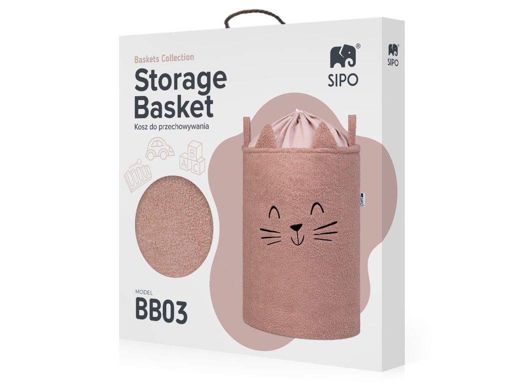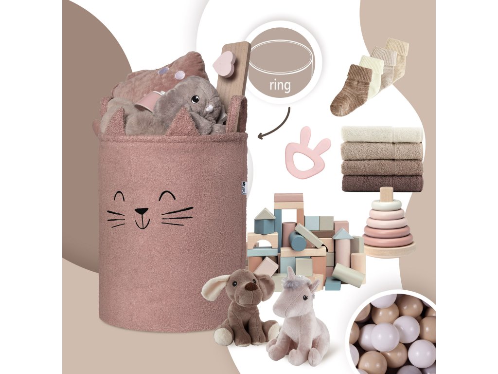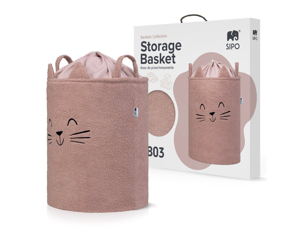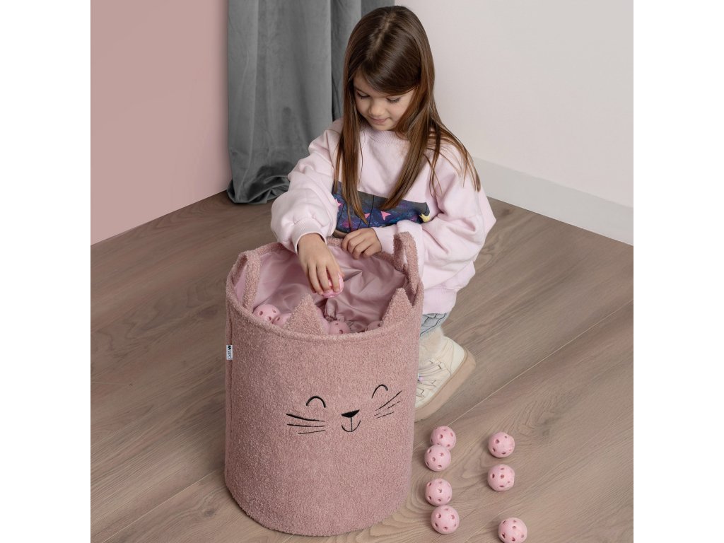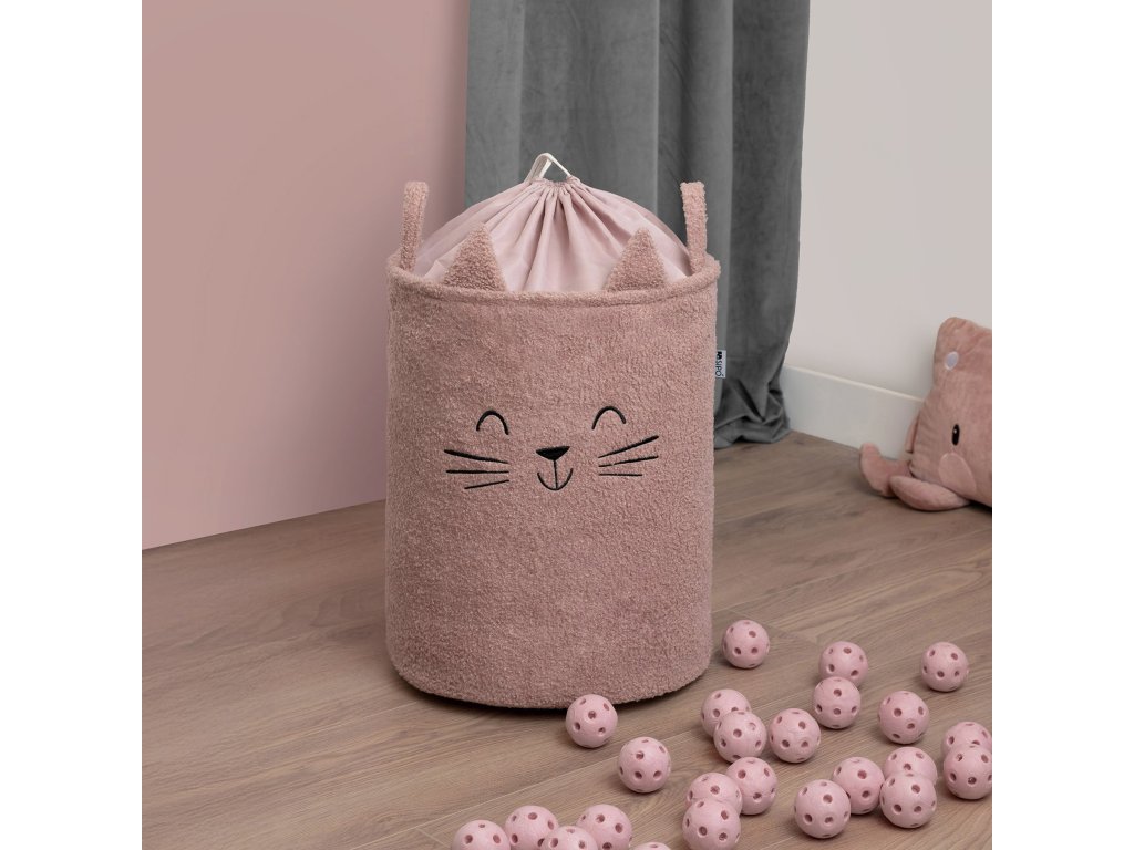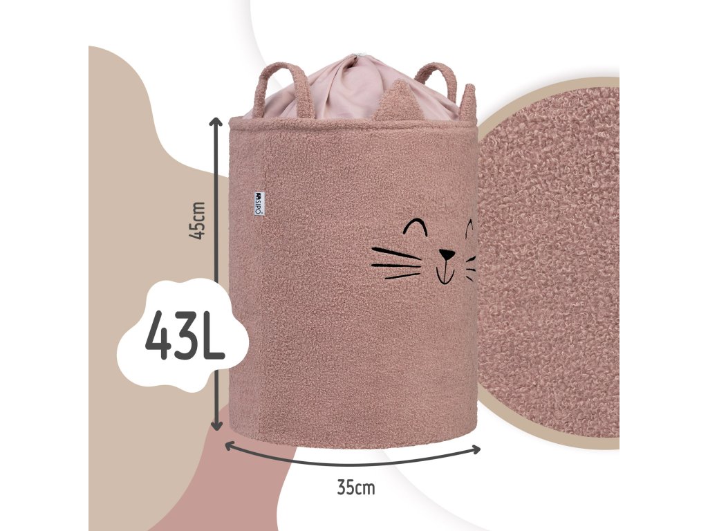 Sipo Kôš na hračky Premium Bouclé so šnúrkou / 43 l, Cat (Pink)