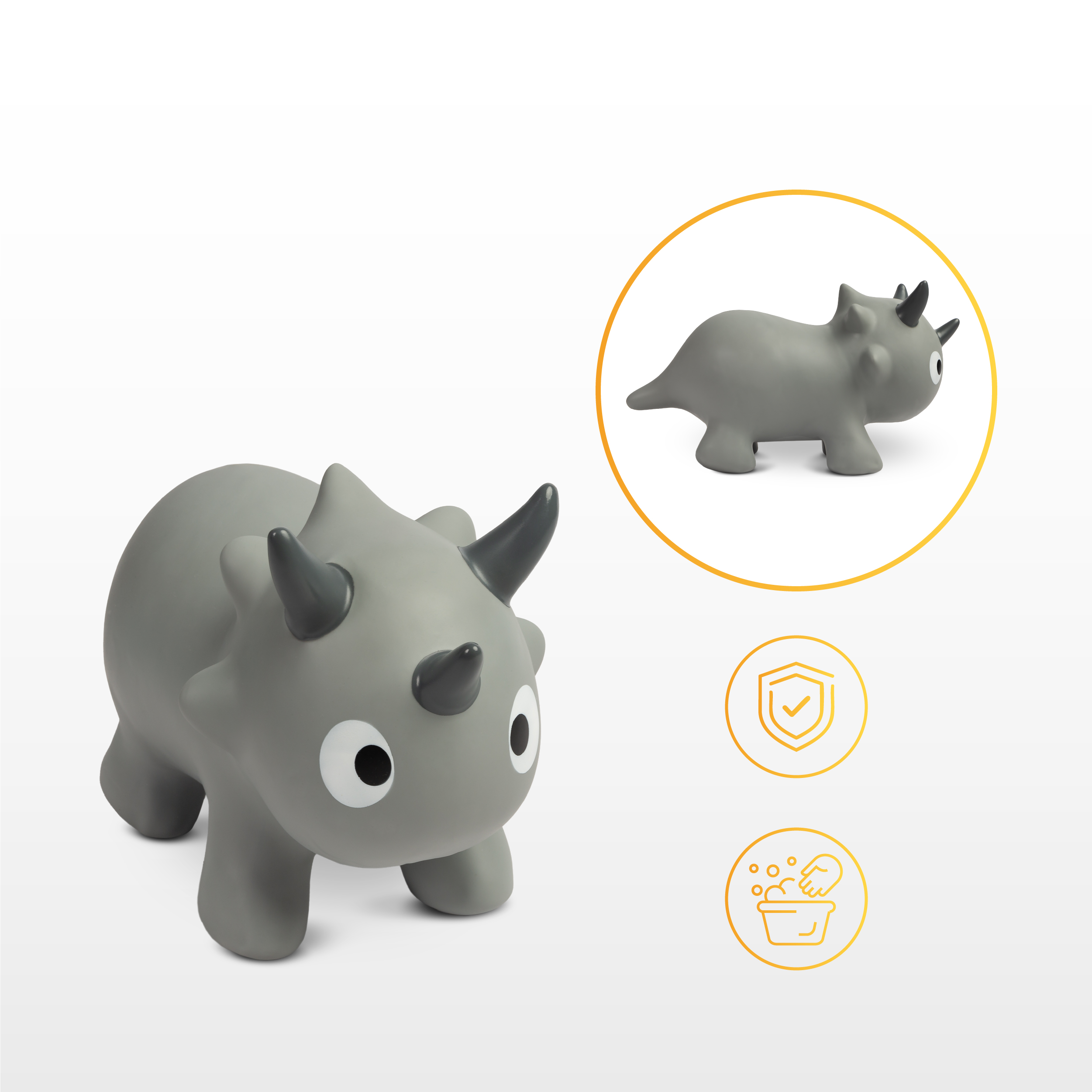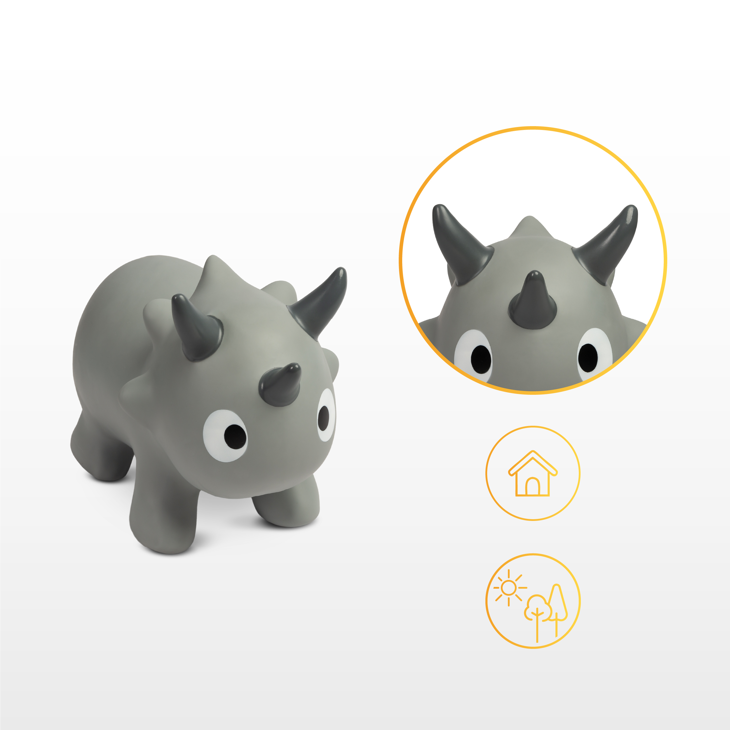 Zoznámte sa s Dinu – nafukovacím skákadlom v tvare pôvabného triceratopsa, ktoré batoľatám poskytne veľa radosti a pohybu. Dinu je skvelý spôsob, ako sa aktívne zabaviť a podporiť rozvoj motorickej koordinácie najmenších.
