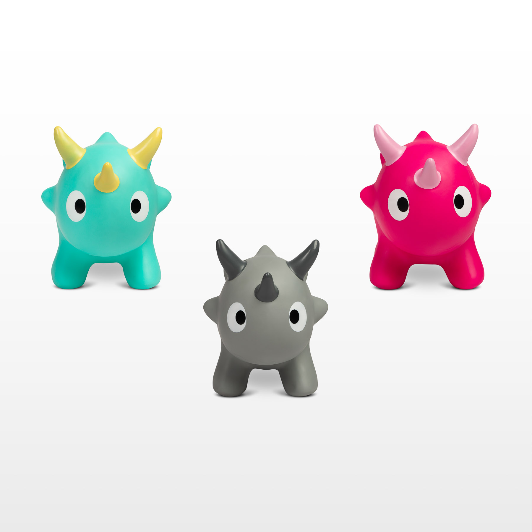 Tri jedinečné farebné verzie Dinu je dostupný v troch očarujúcich farbách: klasickej sivej, energickej modrej a radostnej ružovej. Vďaka tomu si každé dieťa nájde svojho obľúbeného skákajúceho dinosaura!