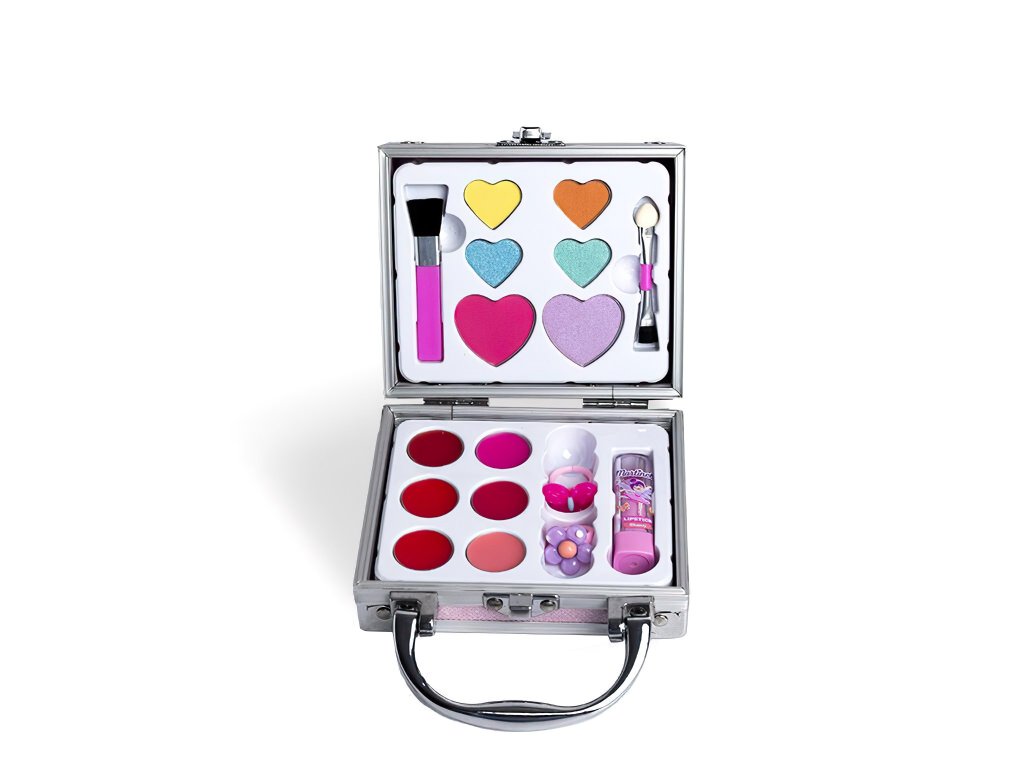 Kozmetický set je navrhnutý s dôrazom na jednoduché a bezpečné používanie. Každý produkt v kufríku je dermatologicky testovaný, čo zaručuje bezpečnosť aj pre najmenšie používateľky. Lesky na pery majú jemnú konzistenciu a sú ľahko aplikovateľné, zatiaľ čo očné tiene prichádzajú v srdiečkových tvaroch, ktoré podporujú hravosť a kreativitu. Set zahŕňa aj mini štetec a aplikátor pre ľahké nanášanie, takže si deti môžu precvičiť svoje zkrášľovacie schopnosti a rozvíjať svoj zmysel pre estetiku.