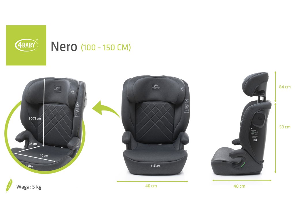 Autosedačka 4Baby NERO I-SIZE 100-150CM – Bezpečnosť a pohodlie na každú cestu