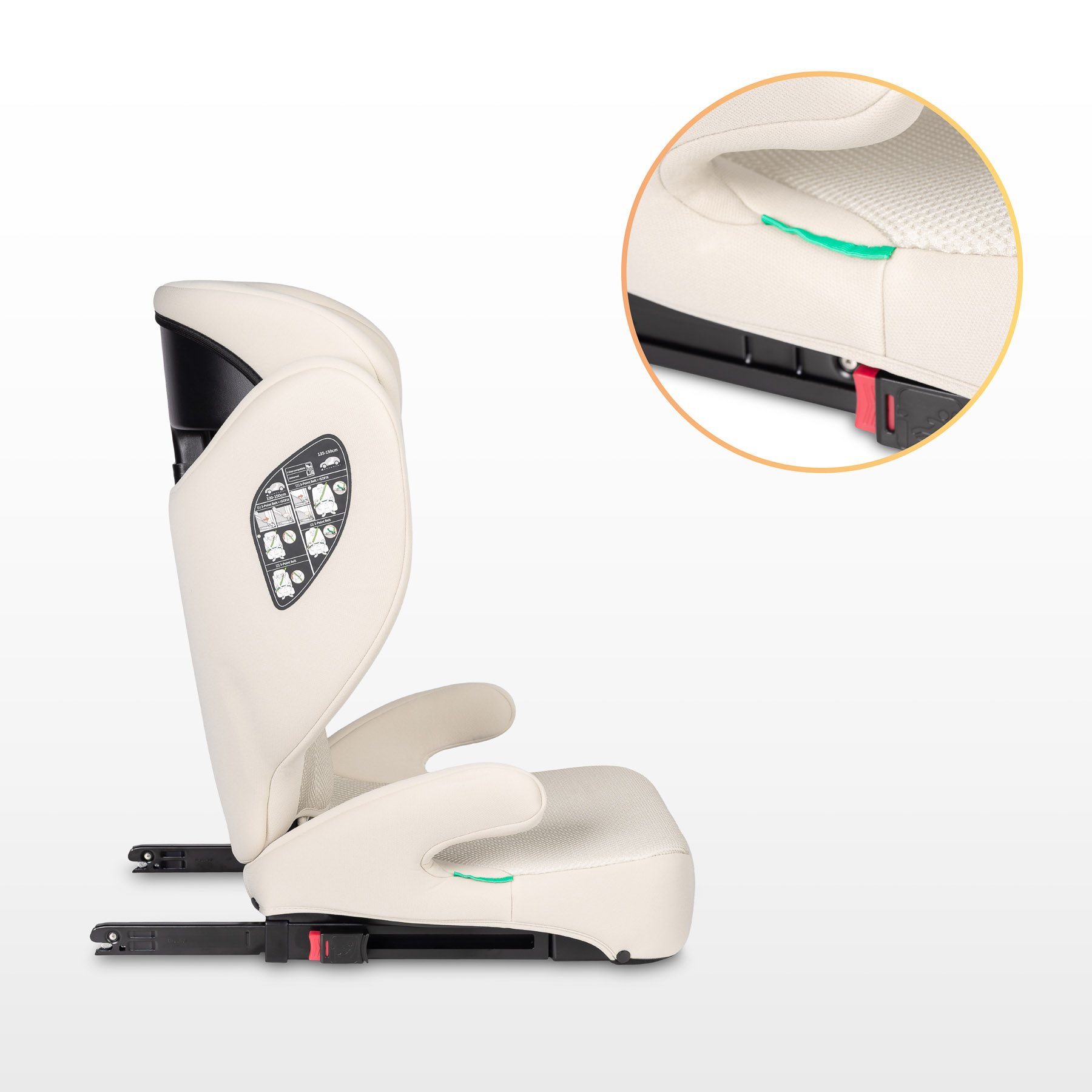 Autosedačka je vybavená praktickými sprievodcami bezpečnostného pásu v opierke hlavy a pohodlnými opierkami rúk, ktoré zabezpečujú správne nastavenie pásu. Tento systém minimalizuje riziko nesprávnej inštalácie a zaručuje stabilné a bezpečné umiestnenie pásu počas každej cesty.