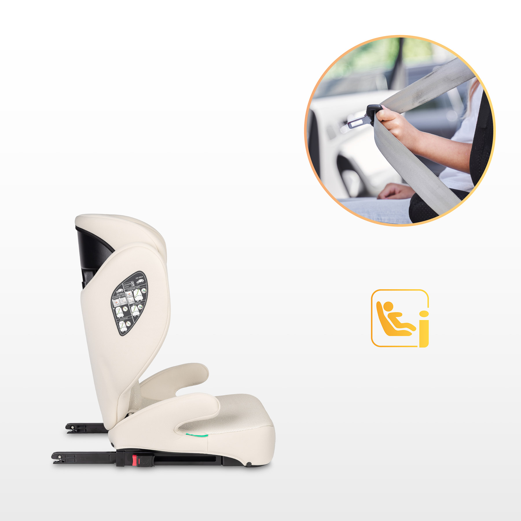 • Praktické vodítka bezpečnostného pásu umiestnené v hlavovej opierke • Pohodlné podrúčky zabezpečujúce správne vedenie bezpečnostného pásu • Intuitívny systém umožňujúci rýchle bezpečné upevnenie • Stabilná poloha pásu počas celej jazdy