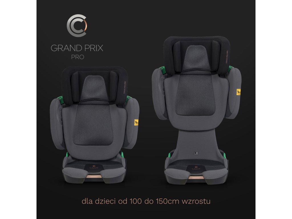 Autosedačka Cavoe Grand Prix Pro je navrhnutá tak, aby poskytovala maximálnu bezpečnosť a pohodlie deťom s výškou od 100 do 150 cm (15-36 kg). Spĺňa najnovšiu európsku normu I-SIZE, ktorá je od 1. septembra 2023 jedinou platnou homologáciou pre autosedačky v EÚ.