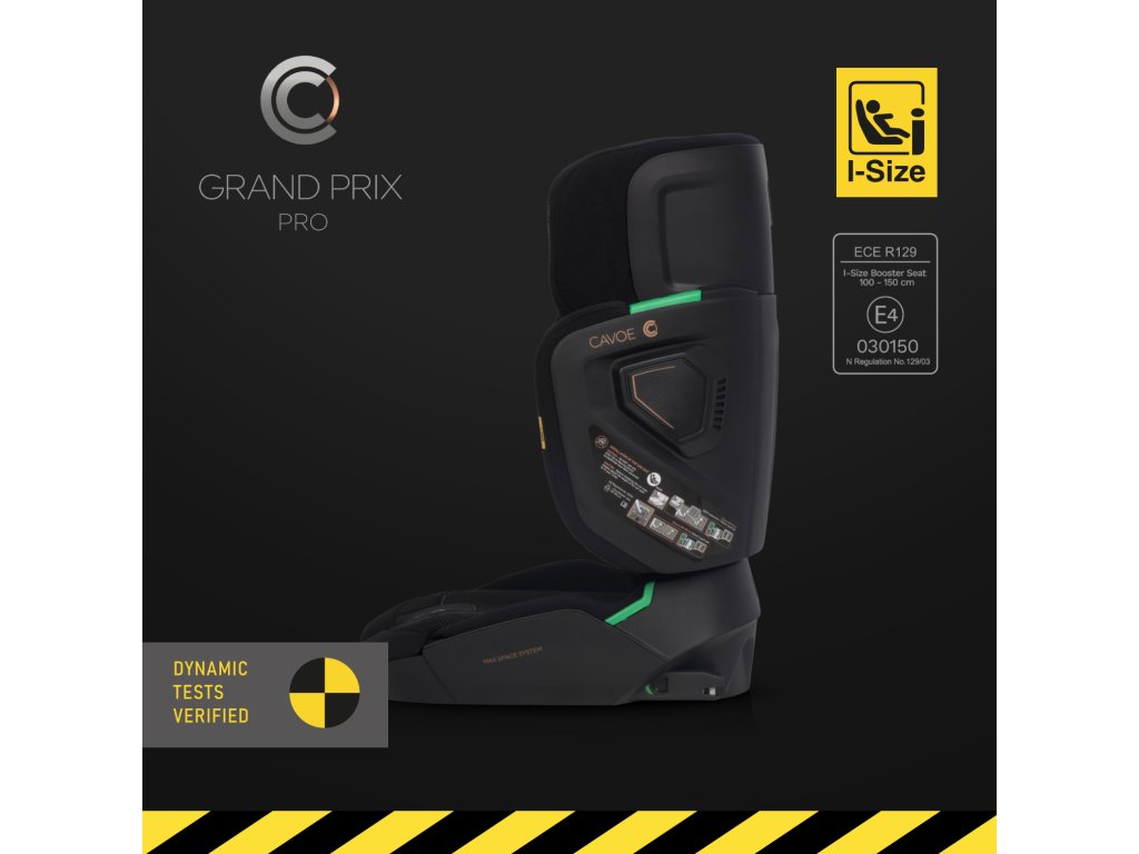 Autosedačka Cavoe Grand Prix Pro je navrhnutá tak, aby poskytovala maximálnu bezpečnosť a pohodlie deťom s výškou od 100 do 150 cm (15-36 kg). Spĺňa najnovšiu európsku normu I-SIZE, ktorá je od 1. septembra 2023 jedinou platnou homologáciou pre autosedačky v EÚ.