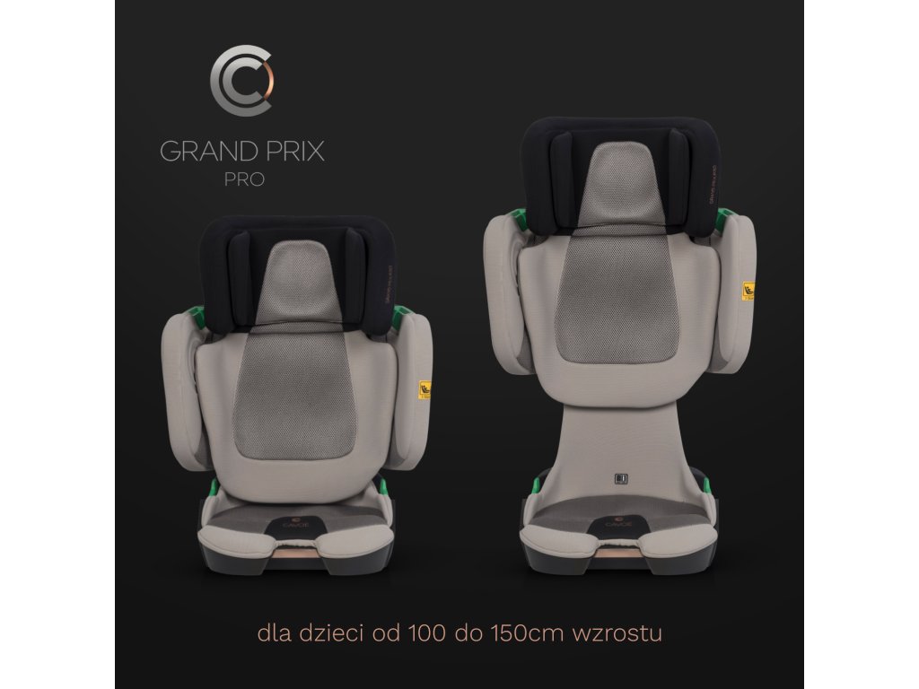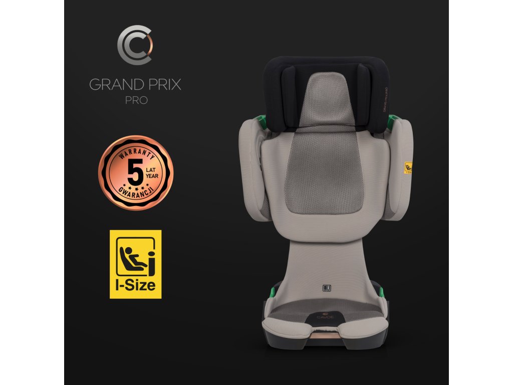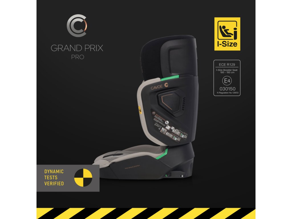 Autosedačka Cavoe Grand Prix Pro je navrhnutá tak, aby poskytovala maximálnu bezpečnosť a pohodlie deťom s výškou od 100 do 150 cm (15-36 kg). Spĺňa najnovšiu európsku normu I-SIZE, ktorá je od 1. septembra 2023 jedinou platnou homologáciou pre autosedačky v EÚ.